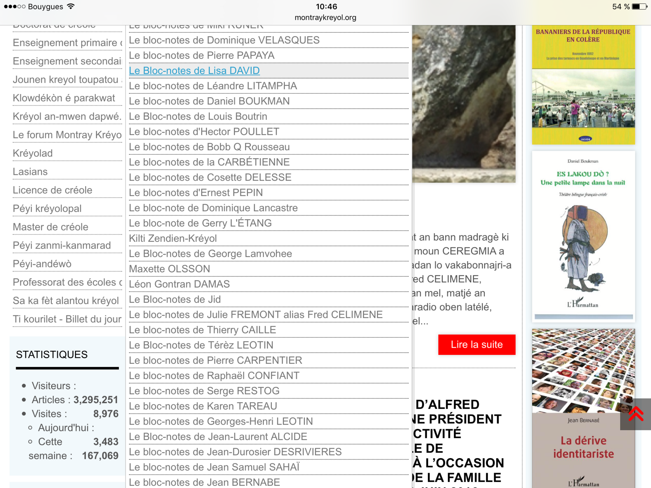 La liste des auteurs des Blocs-notes sur MONTRAY KRÉYOL.