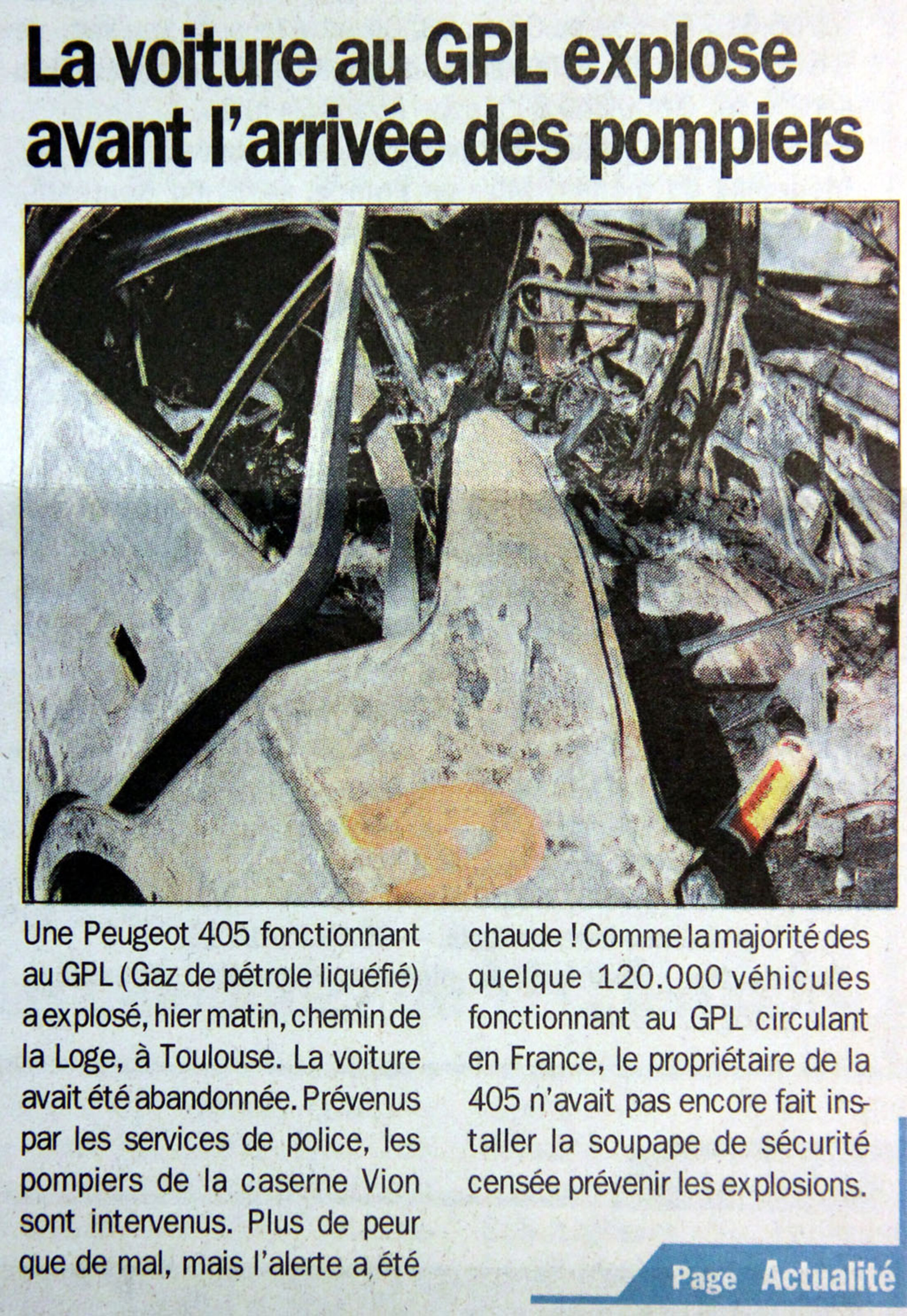 En novembre 1998 à Toulouse, une autre voiture GPL avait explosé et brisé des vitres alentours avant l’arrivée des pompiers. Mais c’était dans le quartier de la Reynerie où des incendies de voitures sont devenus hélas du « pain quasi quotidien ».