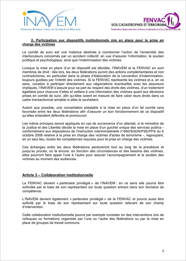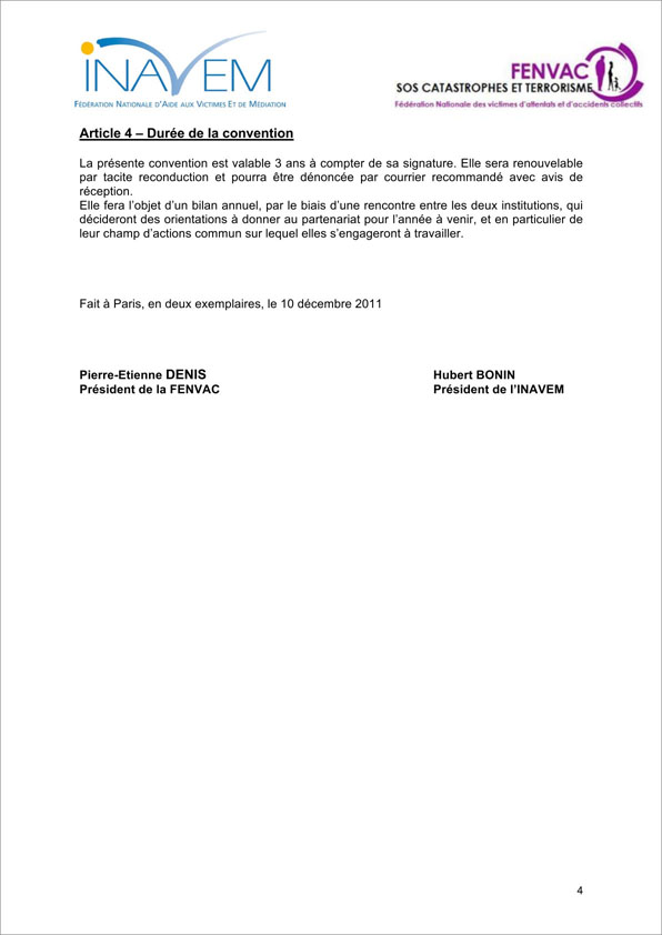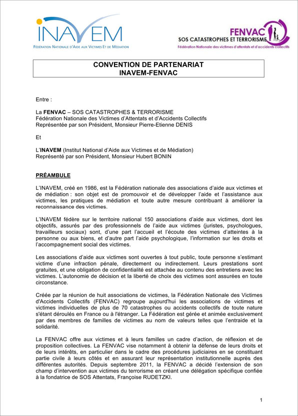 Mais en décembre 2011, en plein procès, alors que Maryse Le Men Régnier était toujours vice-présidente de l'INAVEM, une convention a été signée entre l'INAVEM et la FENVAC. Et là, il y a comme un très très gros problème, ou plutôt, comme de très très gros problèmes car ils ne sont pas qu'un !