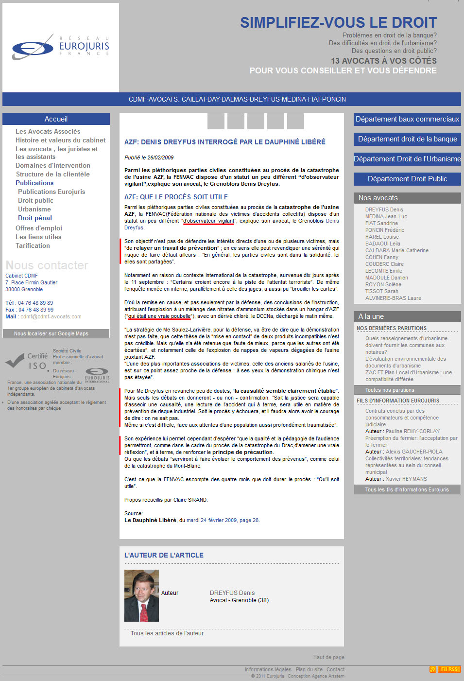 3- Avant même le procès en Appel, le président de la FENVAC, Pierre Etienne Denis, ou son avocat, le bâtonnier Denis Dreyfus n'ont pas arrêté de soutenir la thèse officielle des experts judiciaires, sans même se préoccuper du moindre élément de l'enquête, ni expliquer les raisons objectives de ce soutien univoque. Leur confiance entière envers le travail de ces experts judiciaires est permanente et clairement affichée.