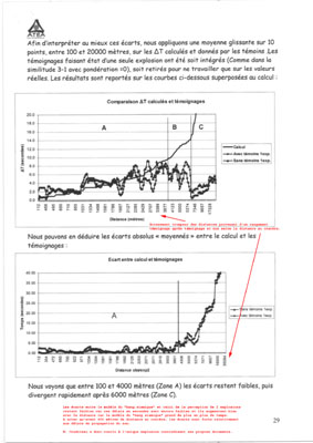 Le rapport de M. Joël Coudrieau (D6716), expert mandaté par la direction de la SNPE pour une étude statistique des témoignages des deux explosions recèle une arnaque grossière que la direction de la SNPE doit probablement connaître. Cet expert a en effet fait croire à une progression des écarts de temps entre les perceptions par les témoins des deux bruits en fonction de la distance alors que son graphique, à cet effet, a utilisé une échelle de représentation calée sur les nombres de témoignages cumulés et non sur la distance au cratère… trompant les non-avertis et finalement montrant au contraire que ces écarts de temps étaient toujours sensiblement les mêmes quelque soit la distance. Ce graphique était donc incompatible avec la thèse officielle du « bang sismique » contrairement à ce que cet expert claironnait dans son rapport. La direction de la SNPE a avalé tout cru ce genre de tromperie qui, bien entendu, n’a jamais choqué les experts judiciaires qui soutenaient également la thèse du « bang sismique » et qui ont réalisé une étude statistique encore plus limitative et orientée.