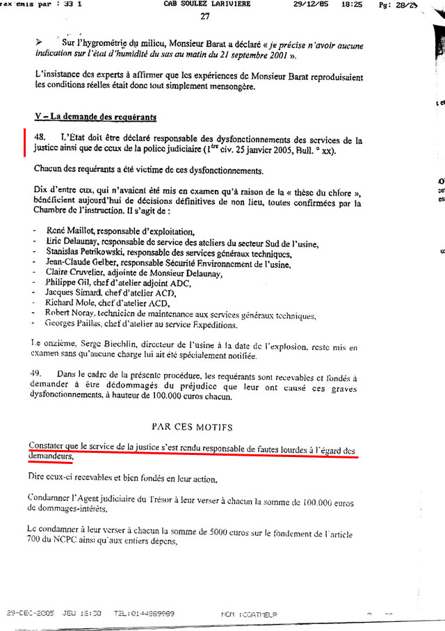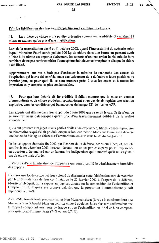 L'article de M. Hecquet publié sur le site public de la Société Chimique de France résume ces 10 années d'interventions et donne l'éclairage scientifique nécessaire pour montrer sur quel fil conducteur irréaliste repose cette thèse officielle que la majorité des trois juges d'Appel considère comme certaine et suffisante pour mettre en prison le directeur d'usine Serge Biechlin.