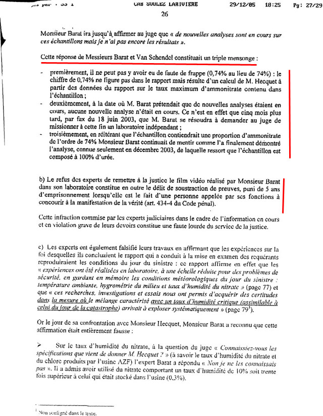 Etonnament, le groupe Total et l'avocat de la Défense, Me Soulez-Larivière, n'ont jamais osé déposer leur demande d'éviction de cet expert François Barat du collège des experts judiciaires. Cela a valu la présence de ce dernier aux deux procès de 2009 et 2011... assumant à la barre avec un grand sourire ses grossières tricheries !
