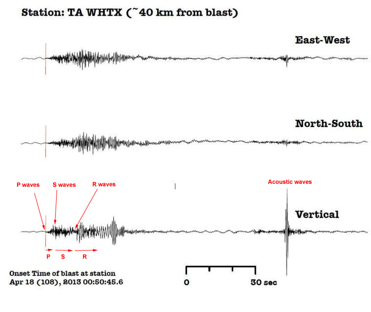 Les stations sismographiques des réseaux nationaux civils enfouis à plusieurs dizaines de km de l’épicentre, placent l’explosion texane de West à une magnitude de 2.1 et celle d’AZF à celle de 3.4.