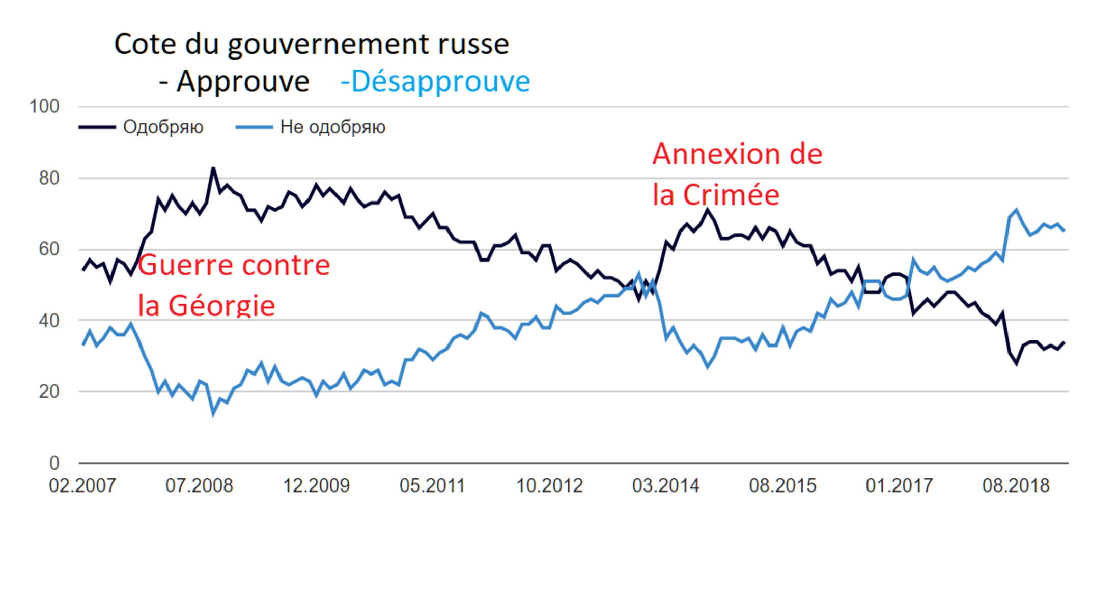 La Russie ne prend pas de risque. Elle ne fait la guerre qu’aux petits peuples. En 1999, la guerre contre la Tchétchénie avait tressé à Poutine, candidat inconnu, une auréole de César, puis celle de président à vie. En 2008, celle contre la Géorgie avait permis de rehausser sa réputation en perte de vitesse. Il en fut de même en 2014 avec l’annexion de la Crimée. Toutefois, ces artifices ne sont que temporaires. L’intervention de l’armée russe en Syrie semble bien loin des préoccupations du « Monde russe », dont Poutine s’était fait le héros, et des soucis de la ménagère russe. Les difficultés d’ordre économique sont têtues. Elles reviennent inexorablement à l’ordre du jour et avec elles la grogne de la population. En 2018, Poutine a entamé un nième mandat sans programme précis, sinon celui d’un militarisme renaissant et d’une guerre froide n° 2 avec l’Occident. Une nouvelle victoire militaire facile ragaillardira la popularité d’un pouvoir qui s’érode d’une manière alarmante aujourd’hui.