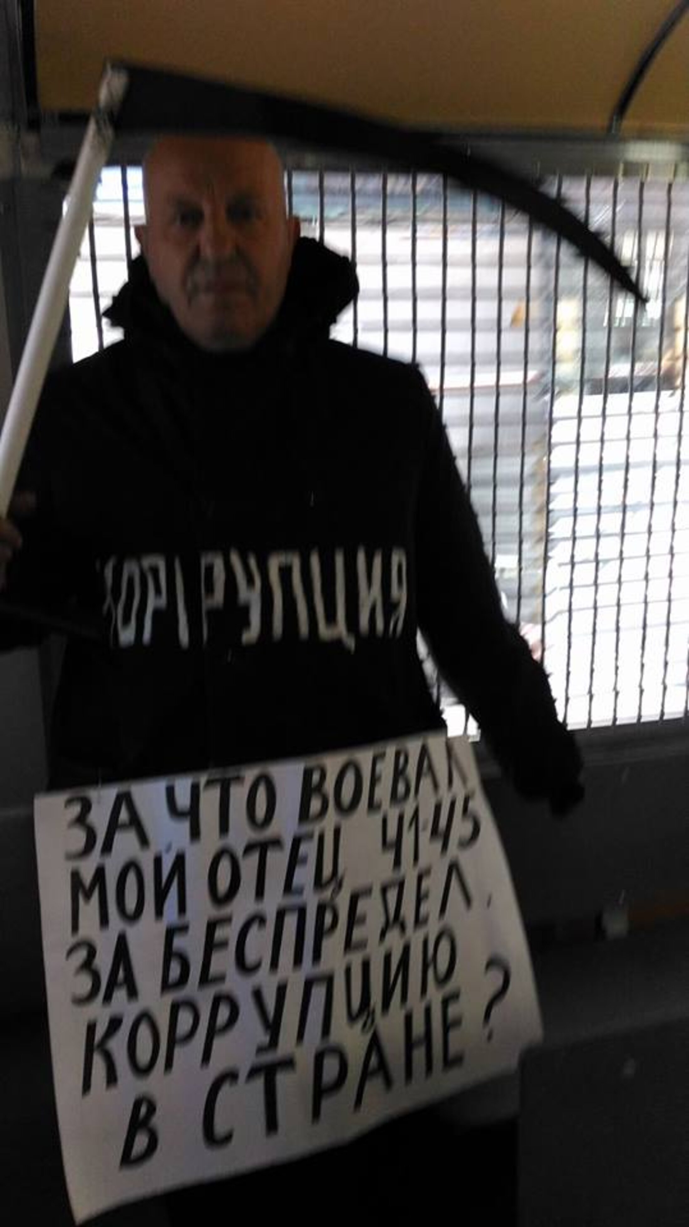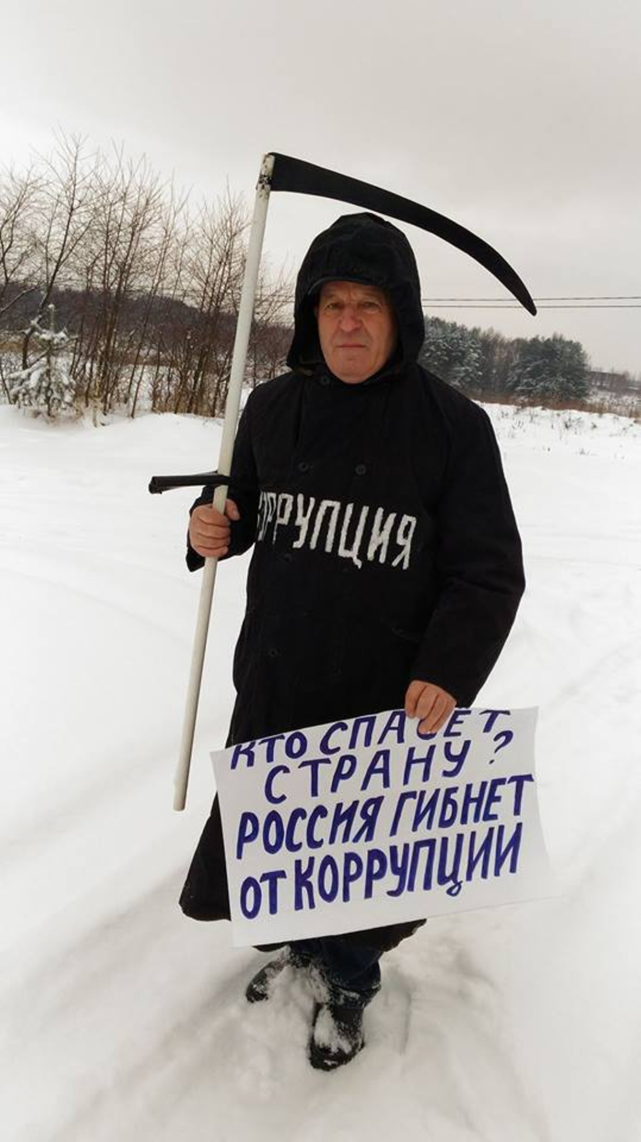 Valery a décidé d’affronter ouvertement la mafia sur la place publique. Revêtu de sa capuche, de sa chasuble noire portant l’inscription « Corruption », et armé de la faux de la mort, il est apparu sur la place Rouge où il a été immédiatement arrêté. Il aborde les policiers en leur disant qu’ils sont collègues. « Tous deux, nous sommes habillés en noir. Sur vous est écrit “Police” et sur moi “Corruption”, mais c’est pareil ! »