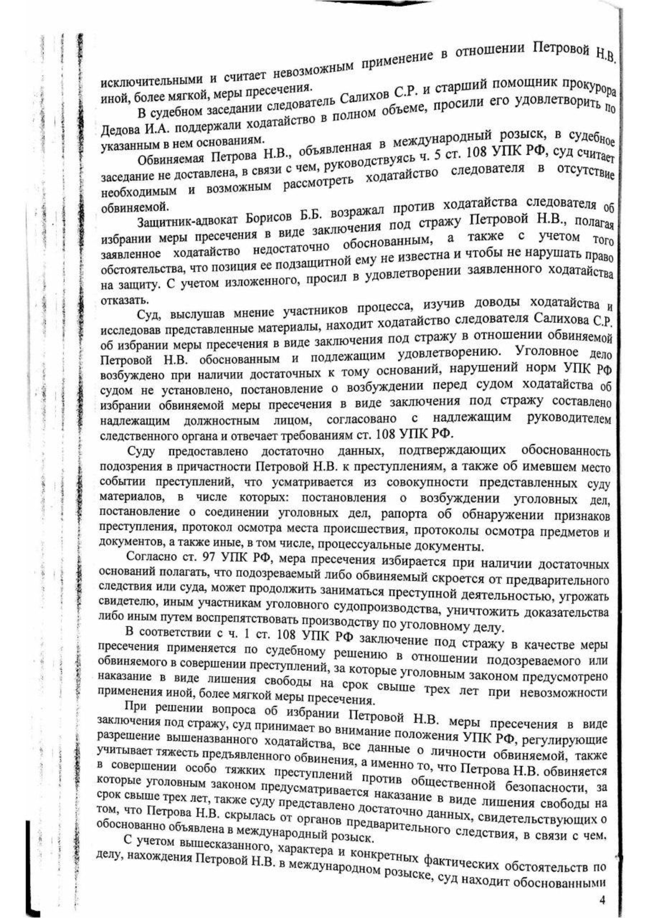 3 août 2018 Petrova N V a été portée sur la liste internationale des personnes recherchées.