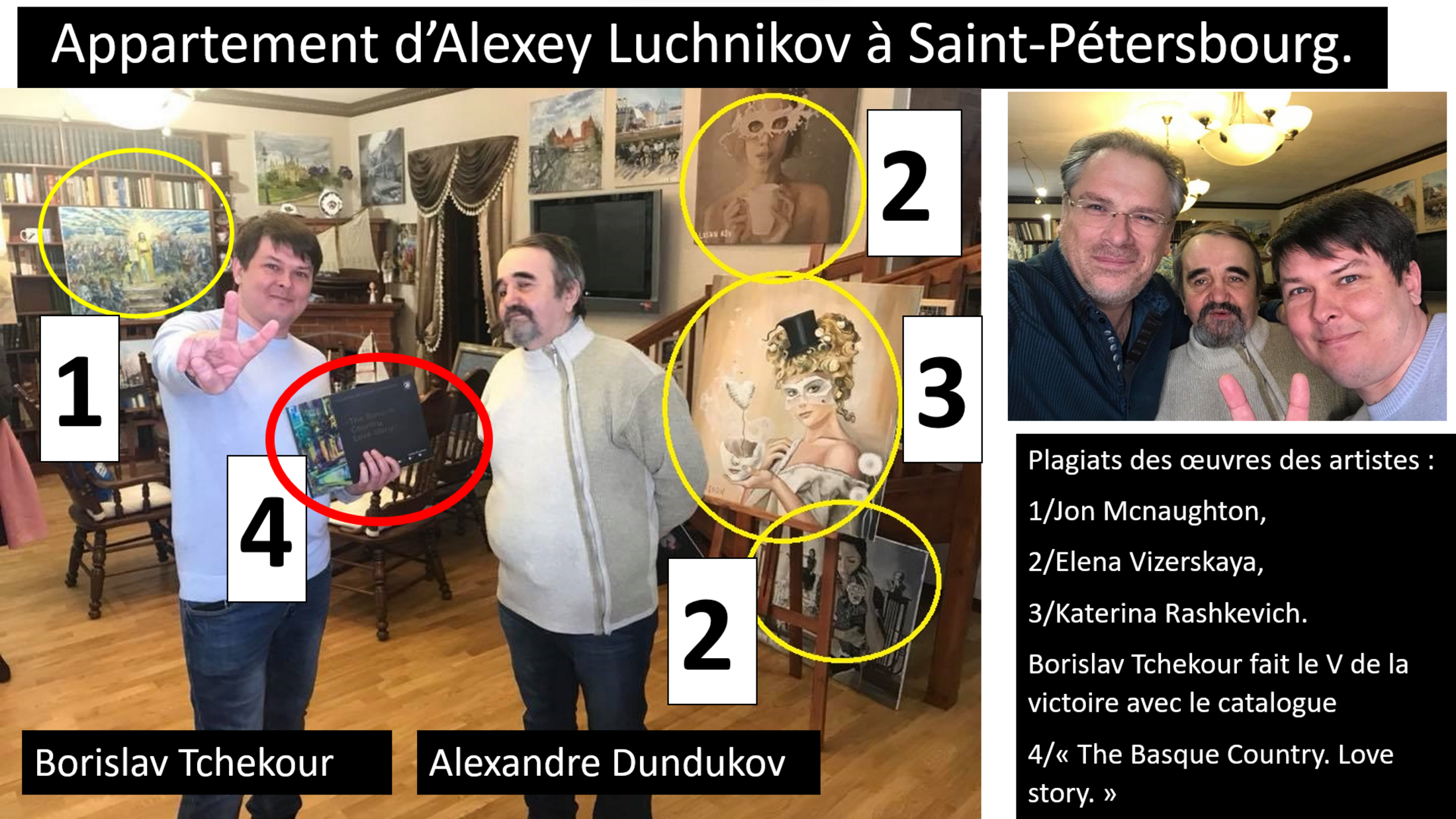 Alexey Luchnikov, homme qu’Elena Kutuzova Bidegain connaît très bien et qu’elle a présenté en mairie de Biarritz, dirige une association internationale de malfaiteurs qui commercialise de fausses œuvres d’art. Il a servi sur la base militaire du FSB à Grozny.