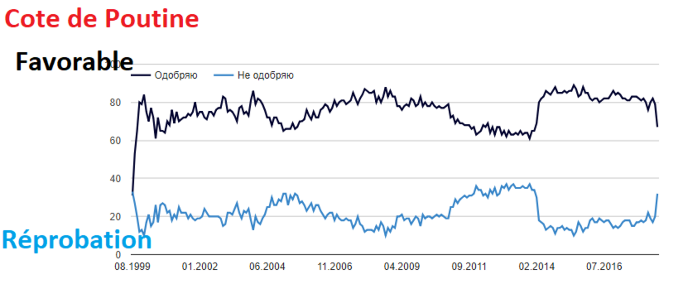 Poutine a raison d'être inquiet. La réforme des retraites a modifié l’humeur de la population. La TVA a été portée de 18 à 20 %. Paradoxalement, le rouble a chuté, alors que le prix du pétrole et les revenus tirés de celui-ci ont doublé. La dépréciation de la monnaie se poursuit. Elle provoque une flambée des prix. Selon l’institut de sondage “Levada”, la cote de Poutine a subitement chuté au niveau de décembre 2011. À l’époque, l’opposition avait fait le plein de ses manifestations contre le pouvoir. Les Russes pourraient surmonter à nouveau la peur d’être arrêté et ressortir dans la rue.