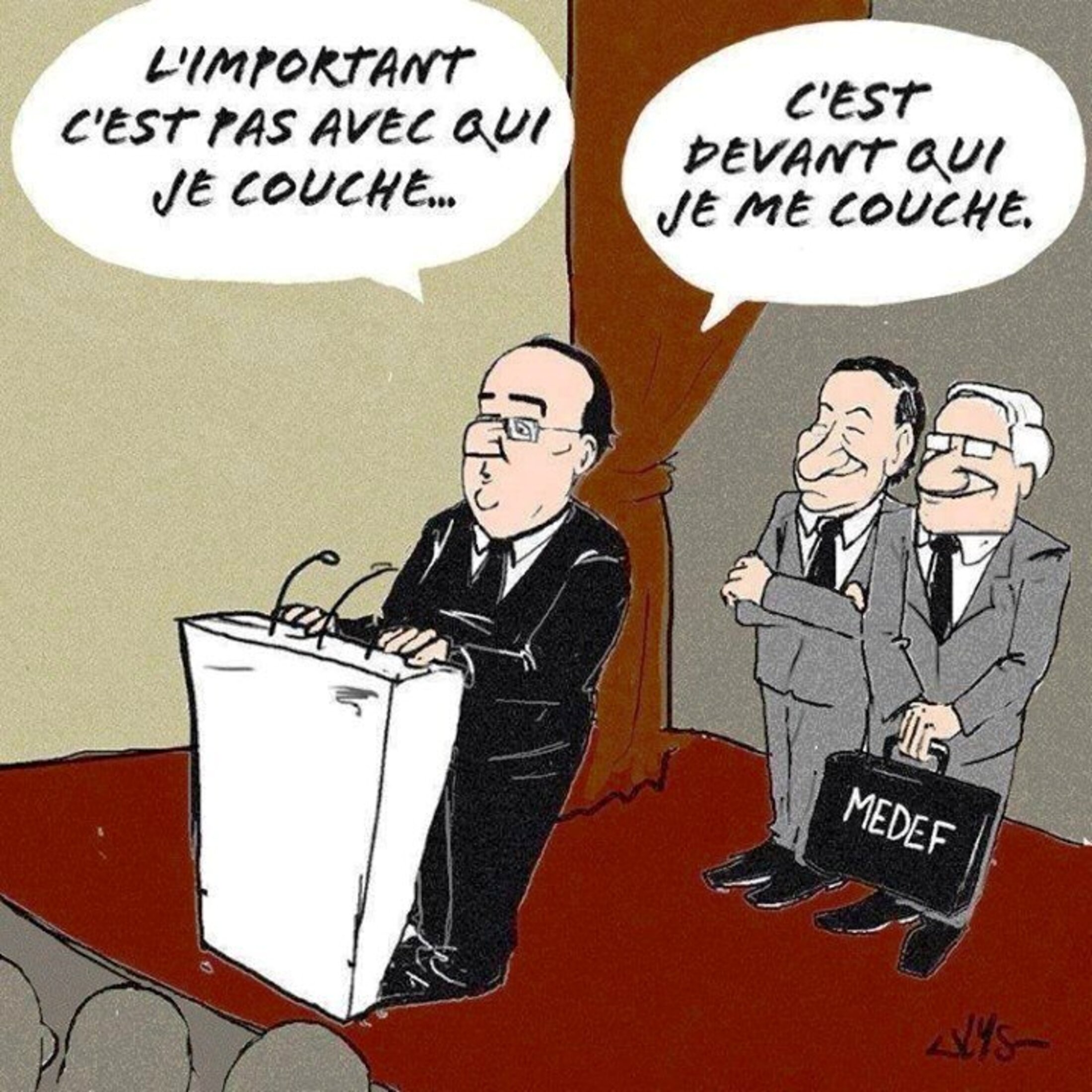 En attendant, il faut agir : les lois Macron ont déjà lourdement taillé dans le vif, en matière de représentation du personnel, de possibilité d'action des Comités d'Entreprise, de contrôle des inspections du travail en matière de plans sociaux, de repos dominical, mais, comme Gattaz en veut toujours plus sans accepter la moindre contrepartie, on va encore plus loin avec le projet de loi El Khomri.