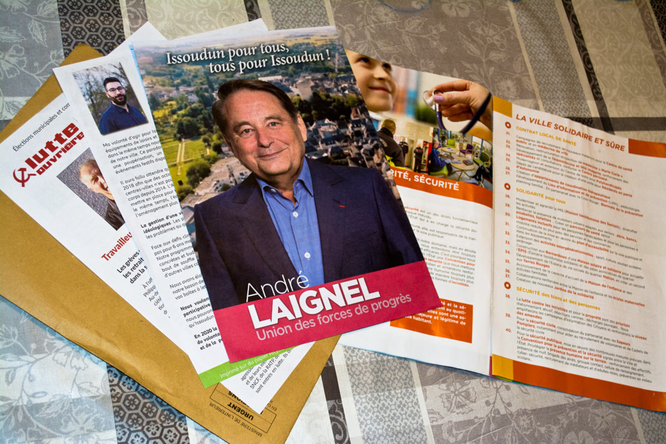 Il s'agit d'un document important, délivré par la mairie a tous les foyers de la commune. Il est censé être l'outil d'information officiel de tous les citoyens appelé à voter. Devant respecter le format A4 recto verso, il laisse beaucoup de liberté quand au contenu. Celui de Monsieur Laignel occupe le recto avec le même contenu que son affiche de campagne, c’est-à-dire un slogan qui n'a pas beaucoup changé depuis plusieurs années, son visage avec en incrustation une photo vue du ciel d'Issoudun, son nom et prénom et le nom de sa liste. Donc le recto confirme que "André Laignel" est probablement l'élément le plus important qui doit motiver les électeurs à voter. Passons au verso. On y trouve un texte de propagande. Le mot principal mis en avant est "LE MEILLEUR", en majuscule et en rouge au centre de la page. On fait donc le rapprochement avec la sensation produite par le recto : Un grand Égo. Certains mots sont ensuite en majuscule pour être mis en valeur. Listons-les :