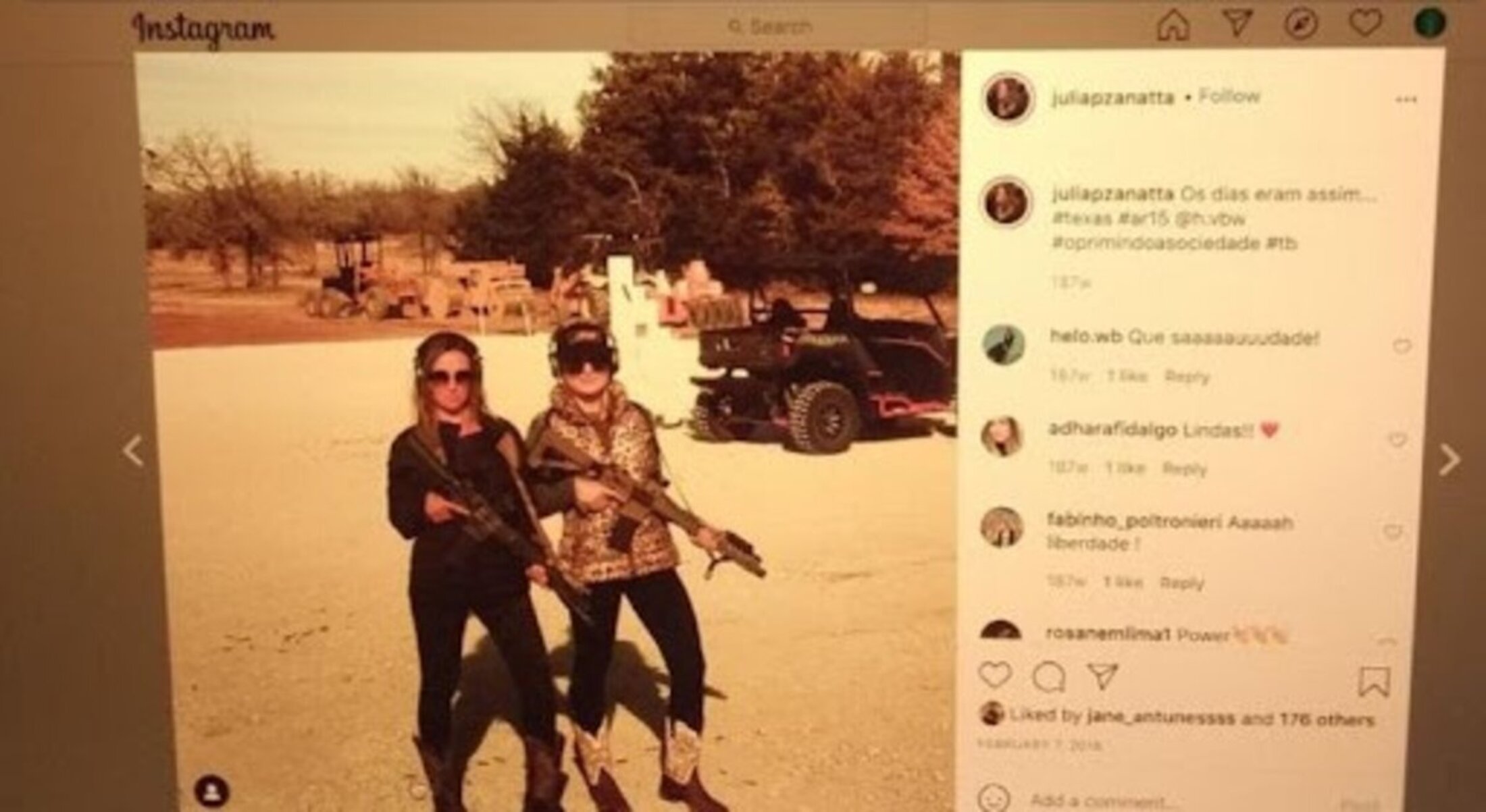 Júlia Zanatta a voyagé à de nombreuses reprises aux États-Unis lorsqu'elle était en couple avec Tony Eduardo de Lima e Silva Hoerhann en 2017 et 2018. Ils ont visité l'USBR, le centre d'entraînement aux armes à feu au Texas géré par Tony Eduardo de Lima e Silva Hoerhann et son ami et collègue du club états-unien de tir "88 Tactical", Yves Daberkow de Sousa. Ce dernier semble demeurer dans la ville de Whitesboro, à l'ouest du comté de Grayson, dans le ranch où le club de tir est installé.