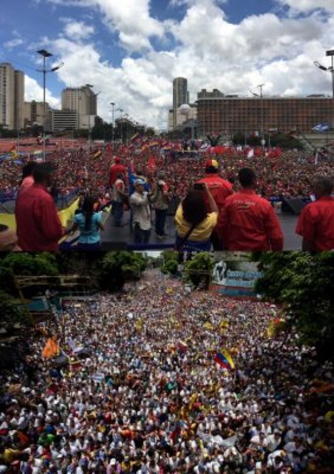 1er septembre 2016, la « toma de Caracas » de la MUD (en bas) contre la « marea roja por la paz » des chavistes (en haut)