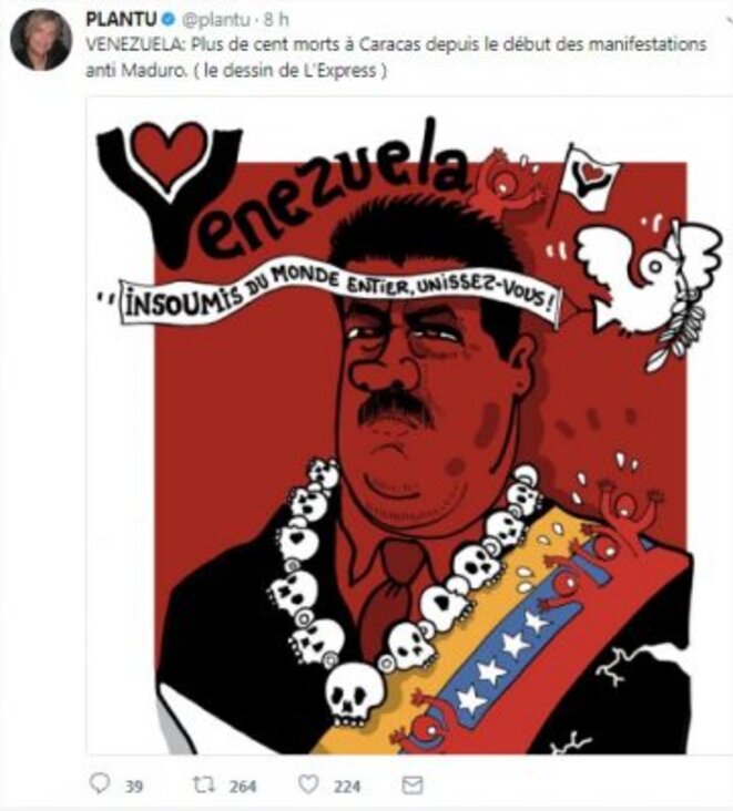 Cette instrumentalisation franco-française du Venezuela ne date pas d’hier. On se souvient par exemple de la polémique lancée par Patrick Cohen, à 10 jours du 1er tour des élections présidentielles, sur l’ALBA, de la manchette du Figaro du 12 avril « Mélenchon : le délirant projet du Chavez français » et des nombreux parallèles à charge entre le Venezuela bolivarien et le projet politique du candidat qui ont émaillé la campagne. La rengaine a continué pendant les élections législatives avec un article du Point sobrement intitulé « Venezuela, l’enfer mélenchoniste », publié la veille du second tour. Aujourd’hui, le coup de projecteur médiatique sur l’élection de l’assemblée constituante vénézuélienne est, une fois encore, l’occasion d’instruire le procès des mouvements antilibéraux français : ainsi, pour Eric Le Boucher (Slate), le Venezuela est « la vitrine de l’échec du mélenchonisme. En réalité, la FI et le PCF, ont tort, aux yeux du parti médiatique, de ne pas adhérer au manichéisme ambiant sur une situation aussi grave et complexe et à sa décontextualisation géopolitique. Ils refusent également d’alimenter la diabolisation et le vieux procès en dictature que se traîne le chavisme depuis presque toujours alors qu’en 18 ans de « révolution bolivarienne », 25 scrutins reconnus comme transparents par les observateurs internationaux ont été organisés, que l’opposition contrôle d’importantes villes, des États et l’Assemblée Nationale et que les médias privés d’opposition sont majoritaires (El Universal, Tal Cual, El Nuevo País, Revista Zeta, El Nacional Venevision, Televen, Globovision, etc.). Que la gauche antilibérale puisse considérer le chavisme comme une source d’inspiration pour ses politiques de redistribution des richesses et non pas un modèle « exportable » en France, contrairement à ce que bon nombre de journalistes tentent d’insinuer (Nicolas Prissette à Eric Coquerel, sur un ton emporté, « franchement, est-ce que c’est ça, le modèle vénézuélien que vous défendez ? » sur Europe 1) semble être un délit d’opinion dans notre pays.