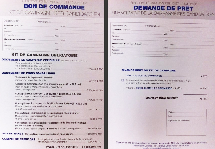 C'est une infraction. Celle d'exercice illégal de la profession de banquier, puisque que le FN fait des prêts à intérêts.