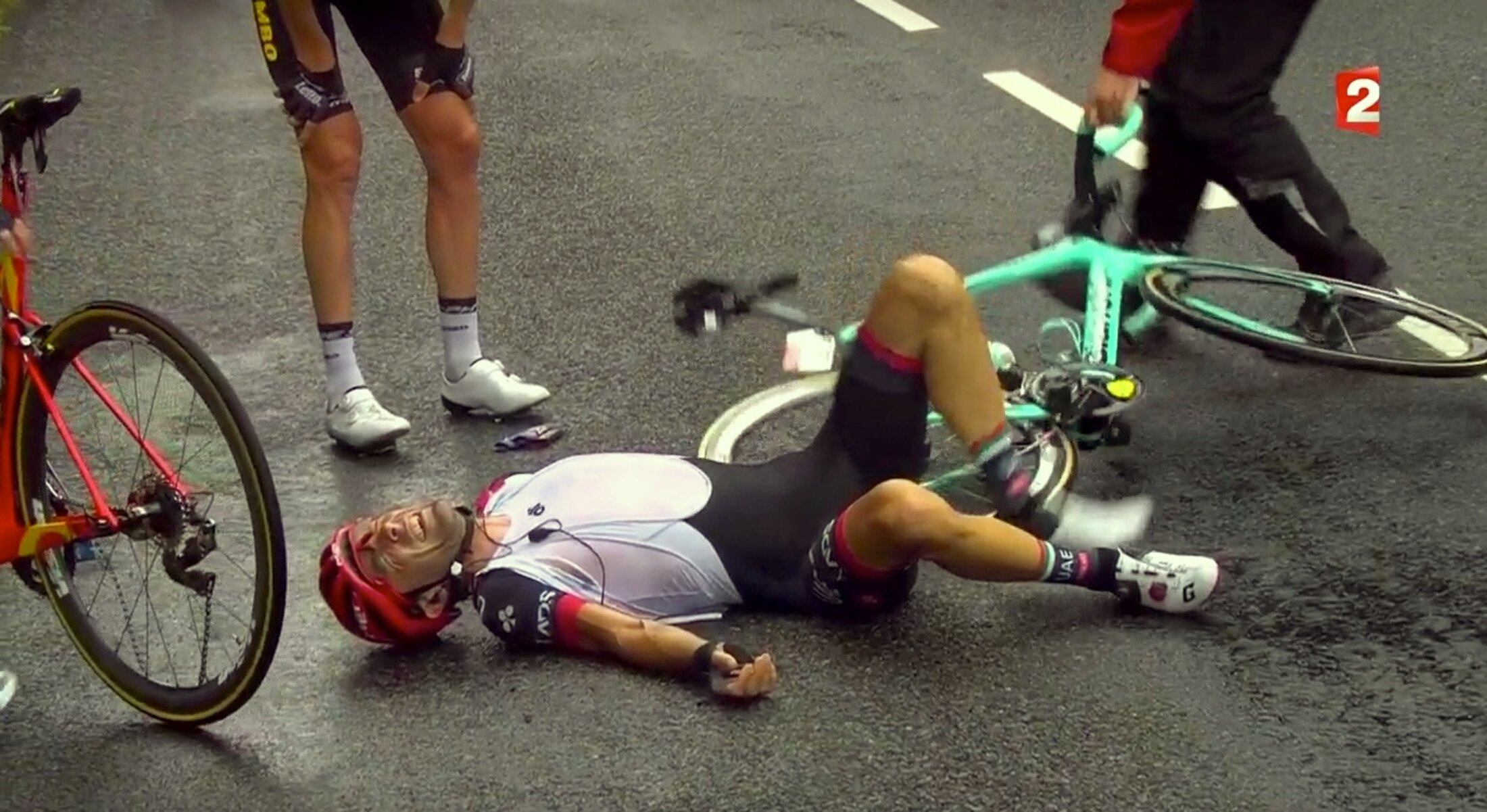 Dés le début de la neuvième étape du tour de France, entre Nantua et Chambéry , le coureur Manuele Mori a été pris dans une petite chute collective, causée par la route mouillée. Moment terrible de souffrance où le réalisateur Jean Maurice Ooghe a laissé le plan passer à l’antenne un peu plus longtemps qu’à l’accoutumée, en gardant le son direct tout au long de la retransmission. Les journalistes émus pour une fois, ne disaient plus rien et nous laissaient apprécié la terrible douleur du coureur.