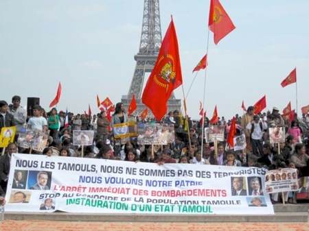D'après nos contacts sur l'île environ 340 000 Tamouls sont encore entre les mains de l'armée Sri Lankaise. Nous sommes très inquiets de voir que le situation se durcit de jour en jour. Il est primordial q'un cessez-le-feu soit imposer très rapidement pour sauver ceux qui restent, crie le tract que me tend une jeune fille place du Trocadéro. Petit bout de papier dérisoire signé Organisation des jeunes Tamouls de France. Elle me demande si je veux d'autres informations. Je n'ai pas le temps! Je suis en retard à mon rendez-vous à la Cité de l'Architecture. Je souris, je lui dis que je suis au courant.