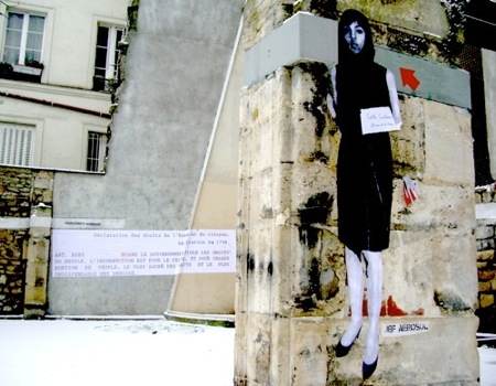 Sur la photo au fond, collé au mur, un extrait de La Déclaration des Droits de l'Homme et du Citoyen de 1793, le XXXVème et dernier article proclame : Quand le gouvernement viole les droits du peuple, l'insurrection est pour le peuple, et pour chaque portion du peuple le plus sacré des droits et le plus indispensable des devoirs.