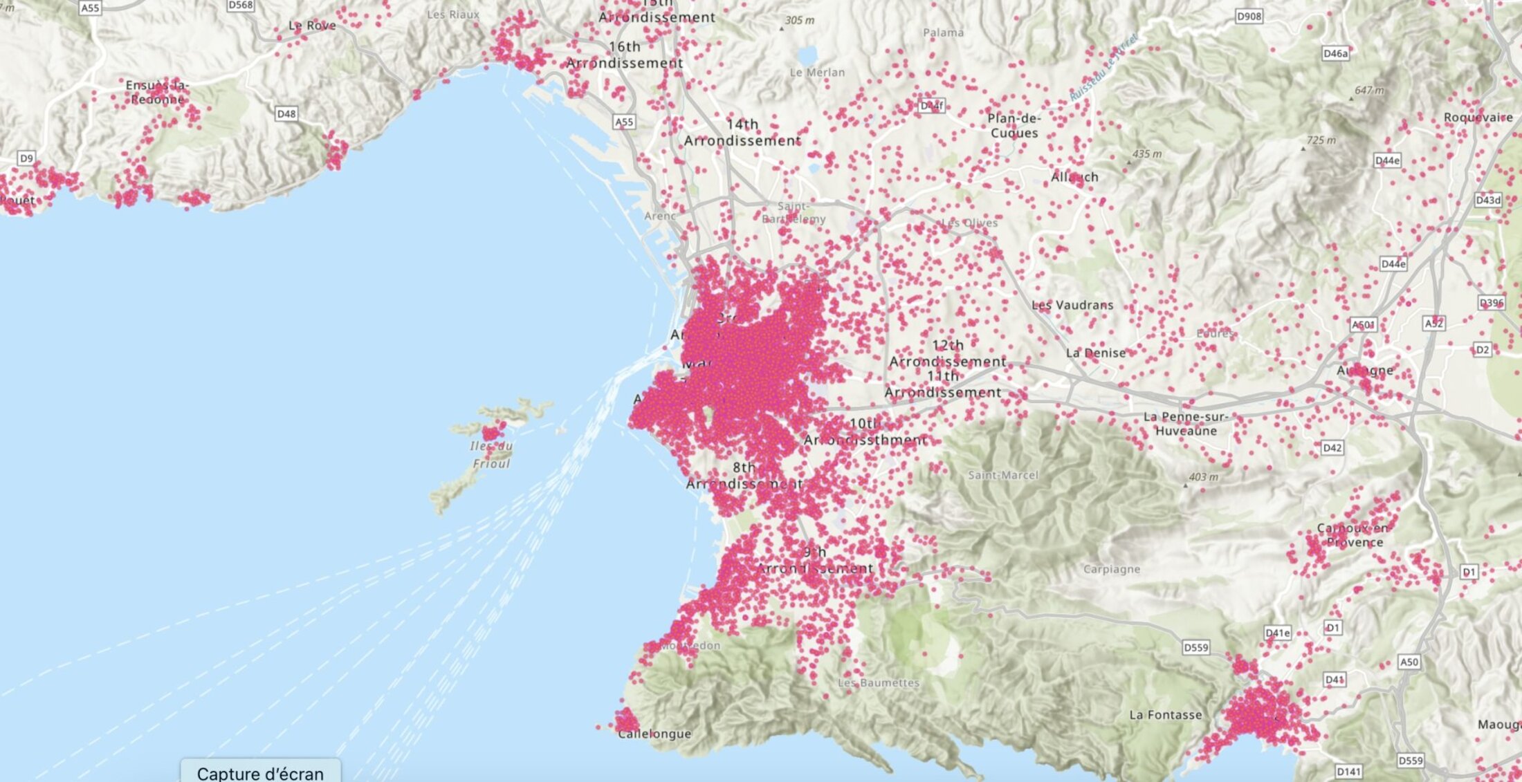 Depuis juillet 2024, il existe (enfin) une carte touristique de Marseille qui inclut les quartiers nord de Marseille, 120 ans après la dernière éditée dans les guides Joanes. Elle était réclamée de longue date pour les milliers de personnes qui séjournent et sont accueilles dans les quartiers nord de Marseille pour se rendre à l’Hôpital Nord, dans l’une des 4.500 entreprises des zones d’activités, pour voir des proches ou en randonnée sur le GR®2013 ou sur le chemin de Marie-Madeleine.