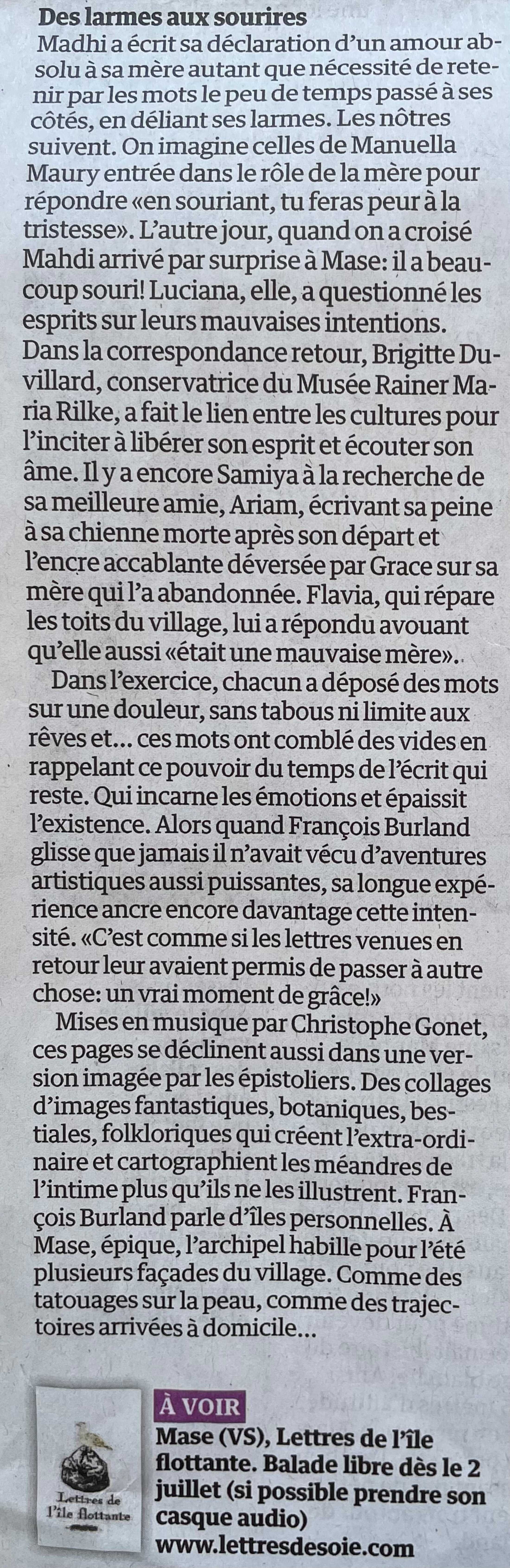 A Mase, on écrit des îles