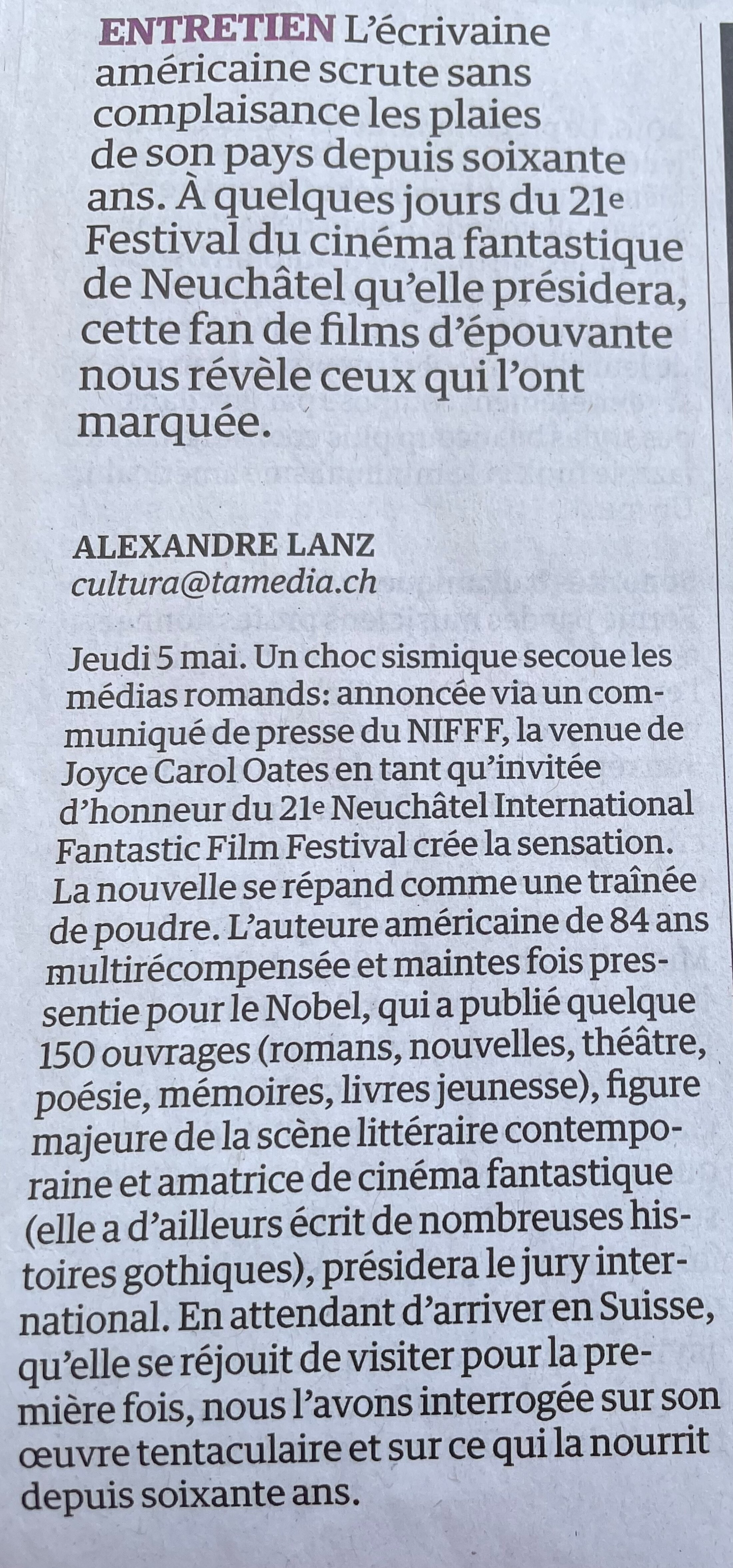Invitée d’honneur NIFF - Joyce Carol Oates