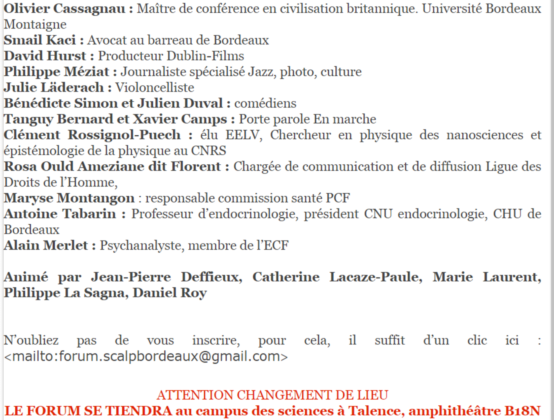 Actualité au débotté - 23- Les intervenants au SCALP de Bordeaux