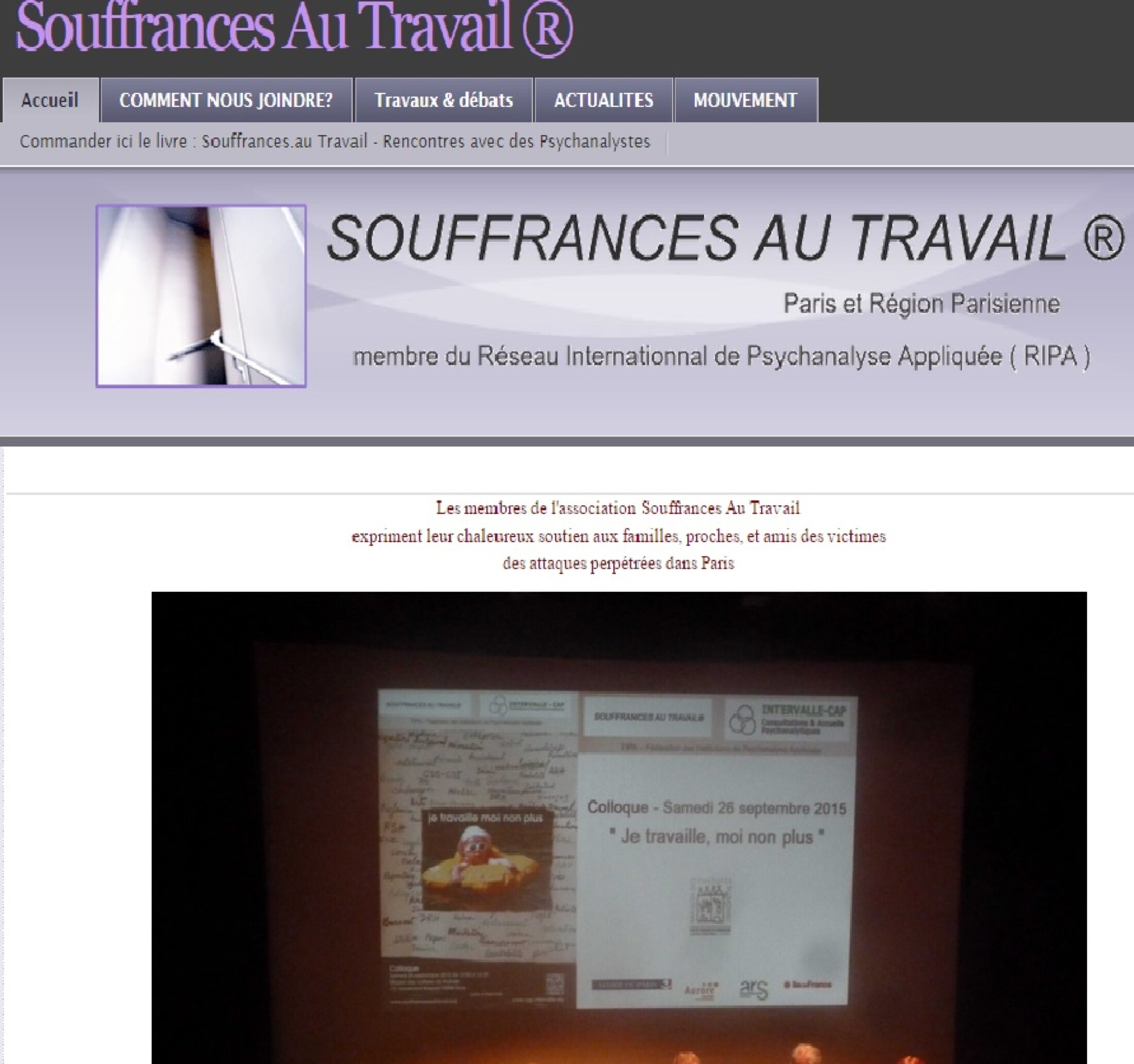 [3] Leguil F., « Souffrances au travail et symptômes du malaise dans la civilisation », Souffrance au travail-Mise au travail de la souffrance, Fontenay –Le-Comte, Ed Lussaud, 2012 ; Doguet-Dziomba M-H, « Au travail, qu’est ce qui fait souffrir », Souffrances au travail-Rencontre avec des psychanalystes, Paris, ED SAT, 2012.