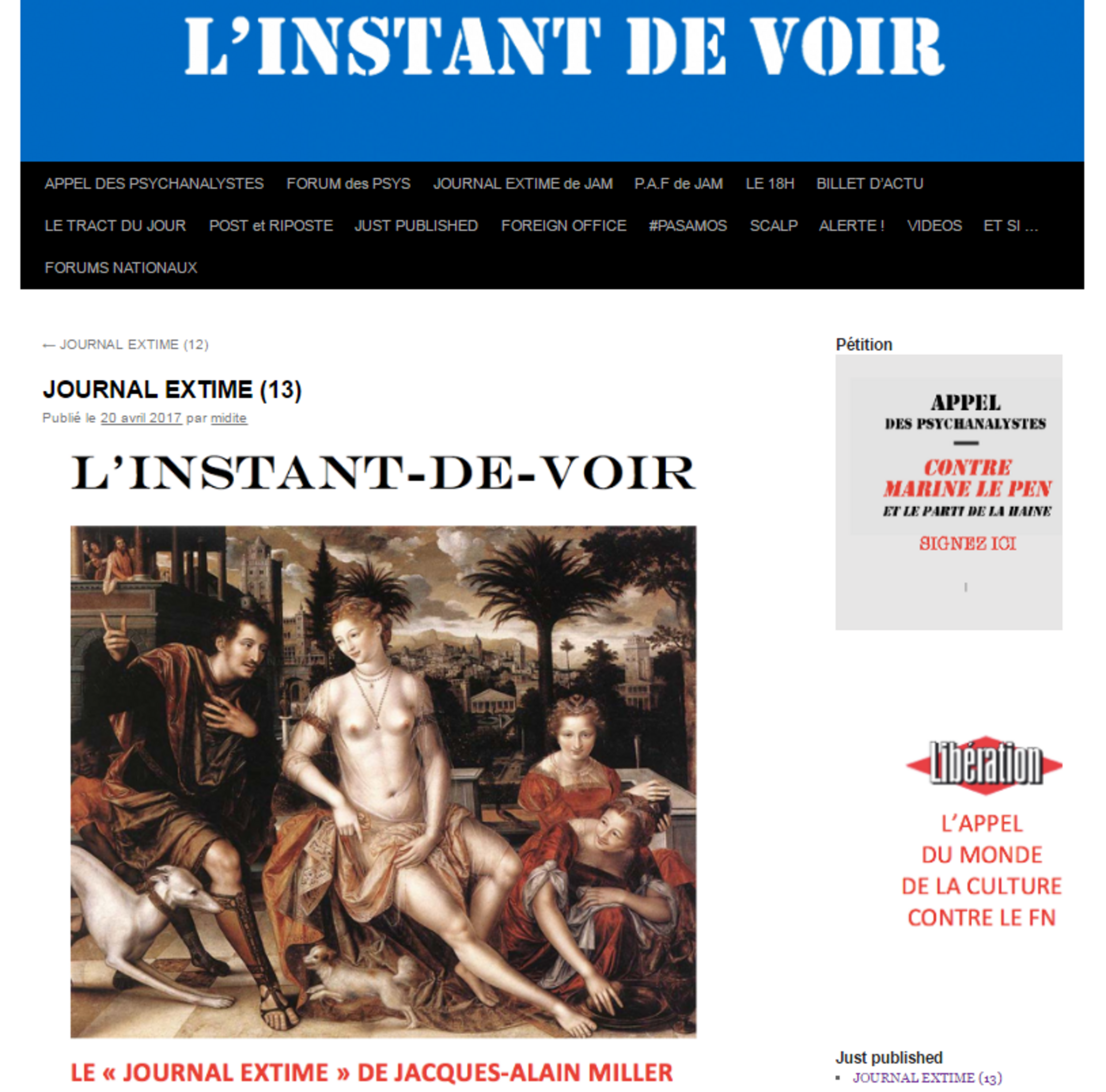 Avec Jacques Alain Miller, François Regnault, Catherine Meut, ce numéro 18 aligne de pertinentes clés de lecture qui ne laisseront pas insensibles. Rien à ajouter à ce jour. Cliquer sur l'image pour accéder au journal. Ceci peut s'adresser aussi bien aux cinq mille blogueurs et blogueuses de Mediapart, que nous sommes, qu'aux autres personnes qui peuvent nous lire.