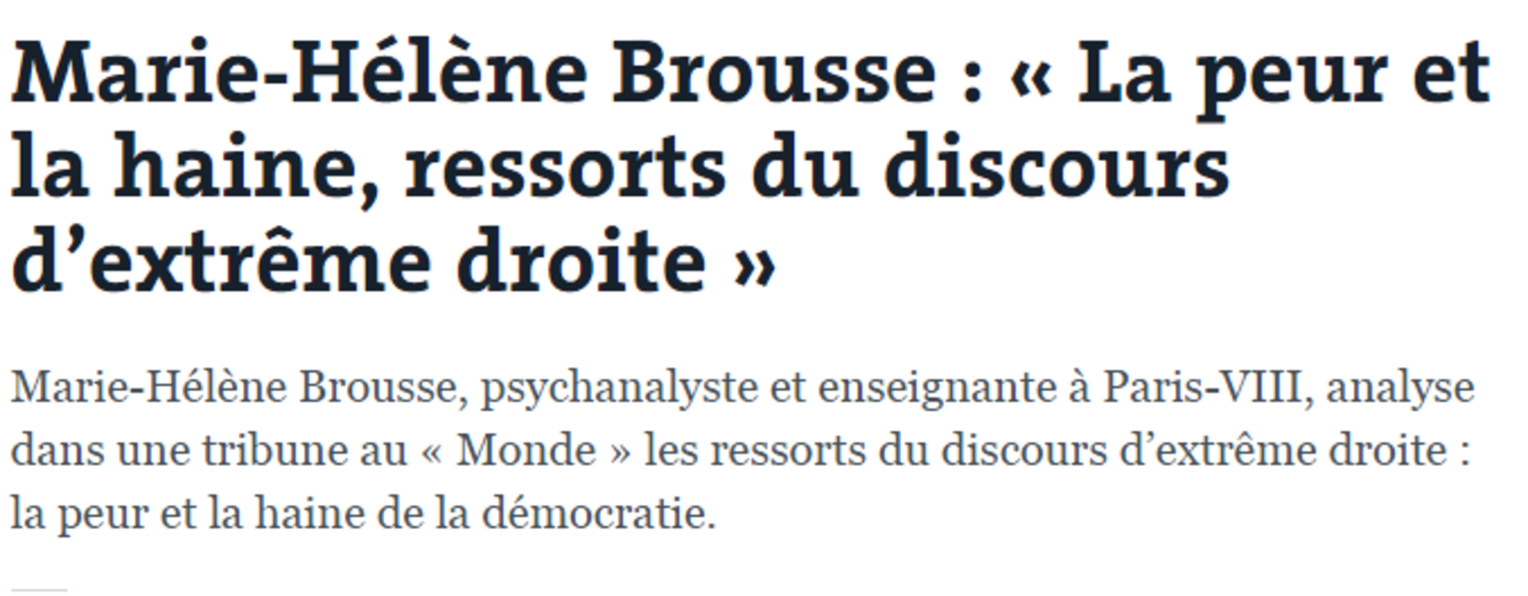 L'actualité au débotté -10- Article de Marie Hélène Brousse-