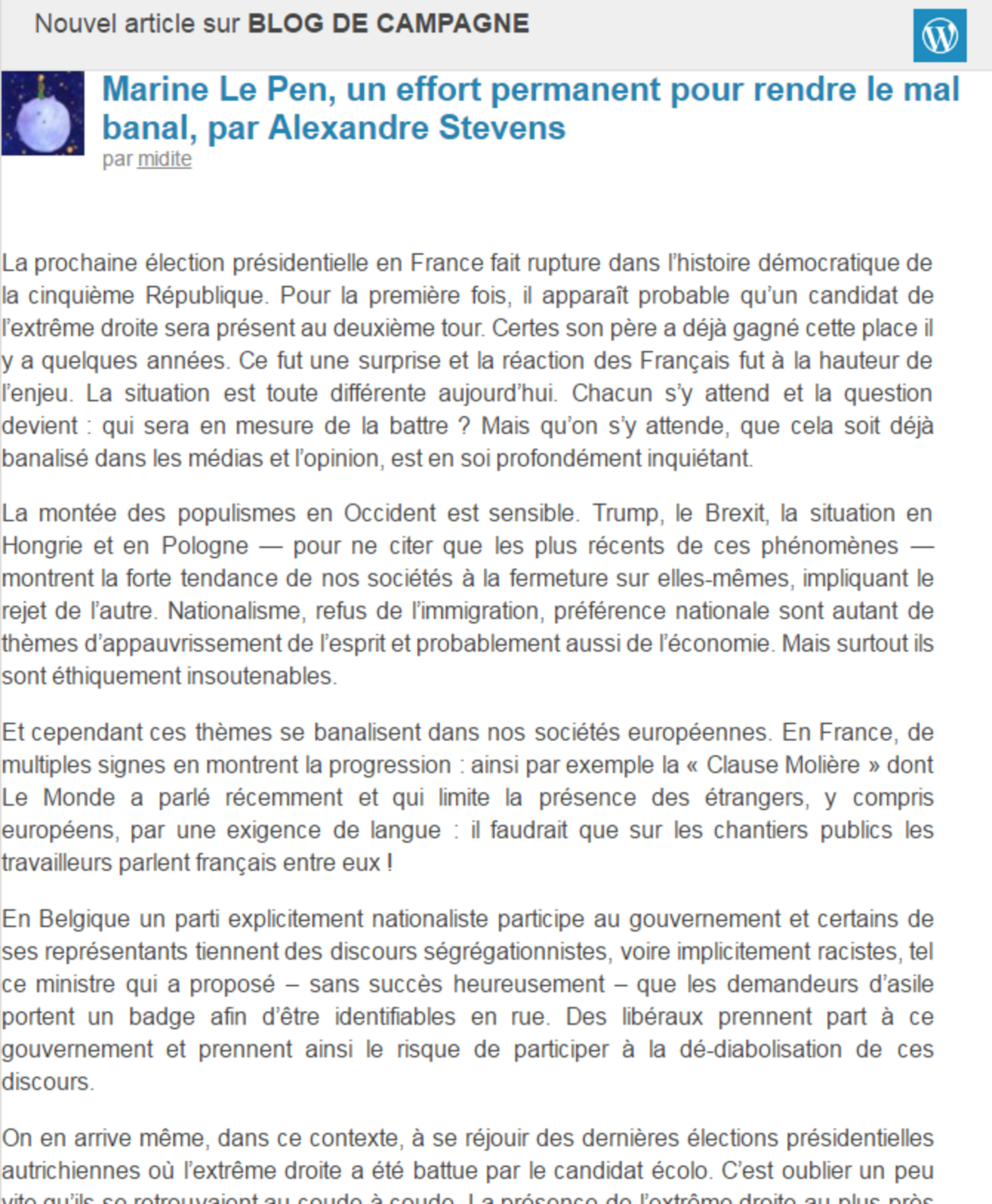 Actualité au débotté -13- Alexandre Stevens, psychanalyste, dans le Blog Campagne