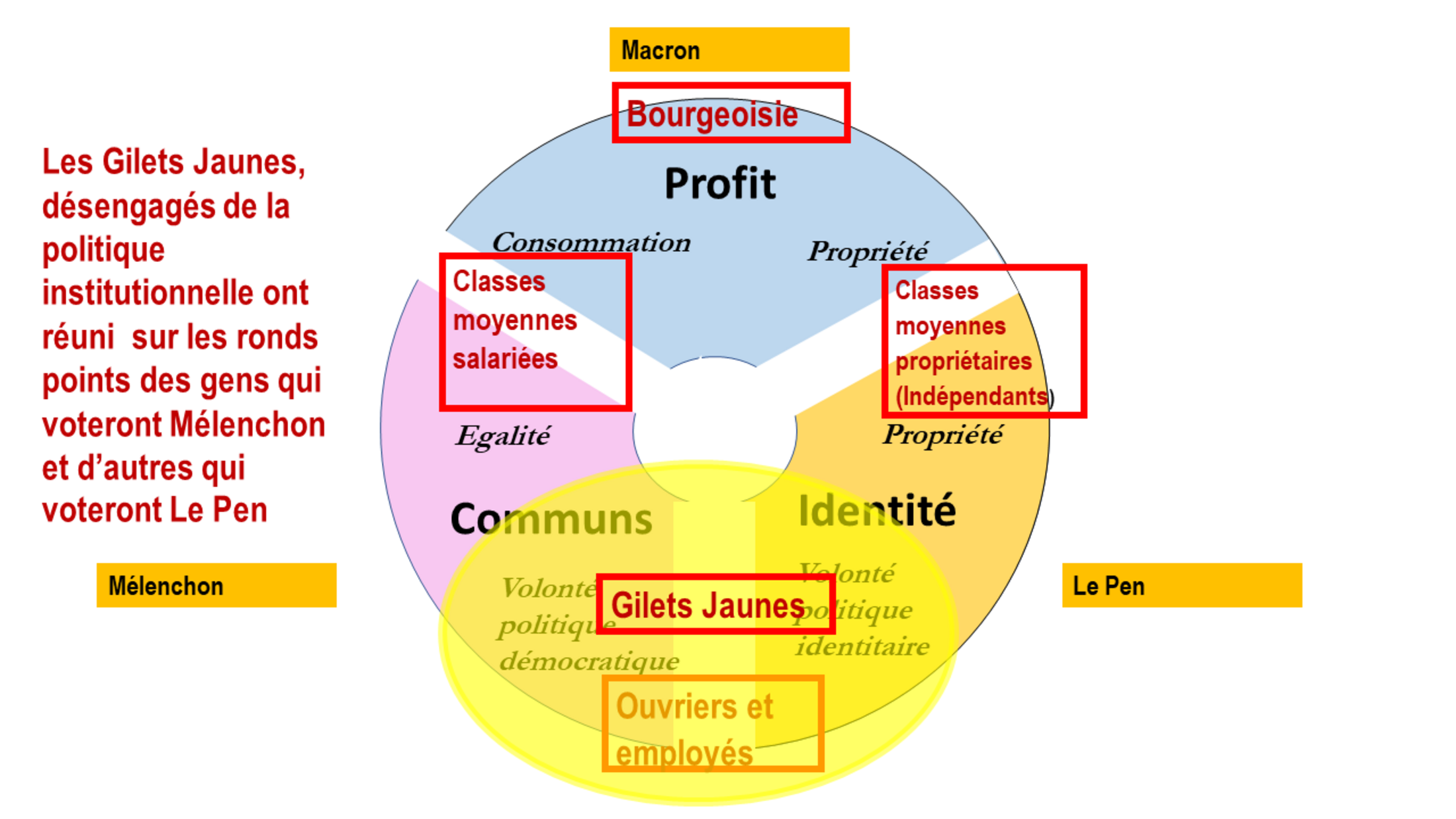 par leurs programmes : soit laisser le capitalisme assurer la prospérité (valoriser le profit), soit débarrasser le pays des problèmes que crée l’immigration (exaltation de l’identité), ou bien élargir le champ des « communs » et définir démocratiquement les orientations de leur gestion.