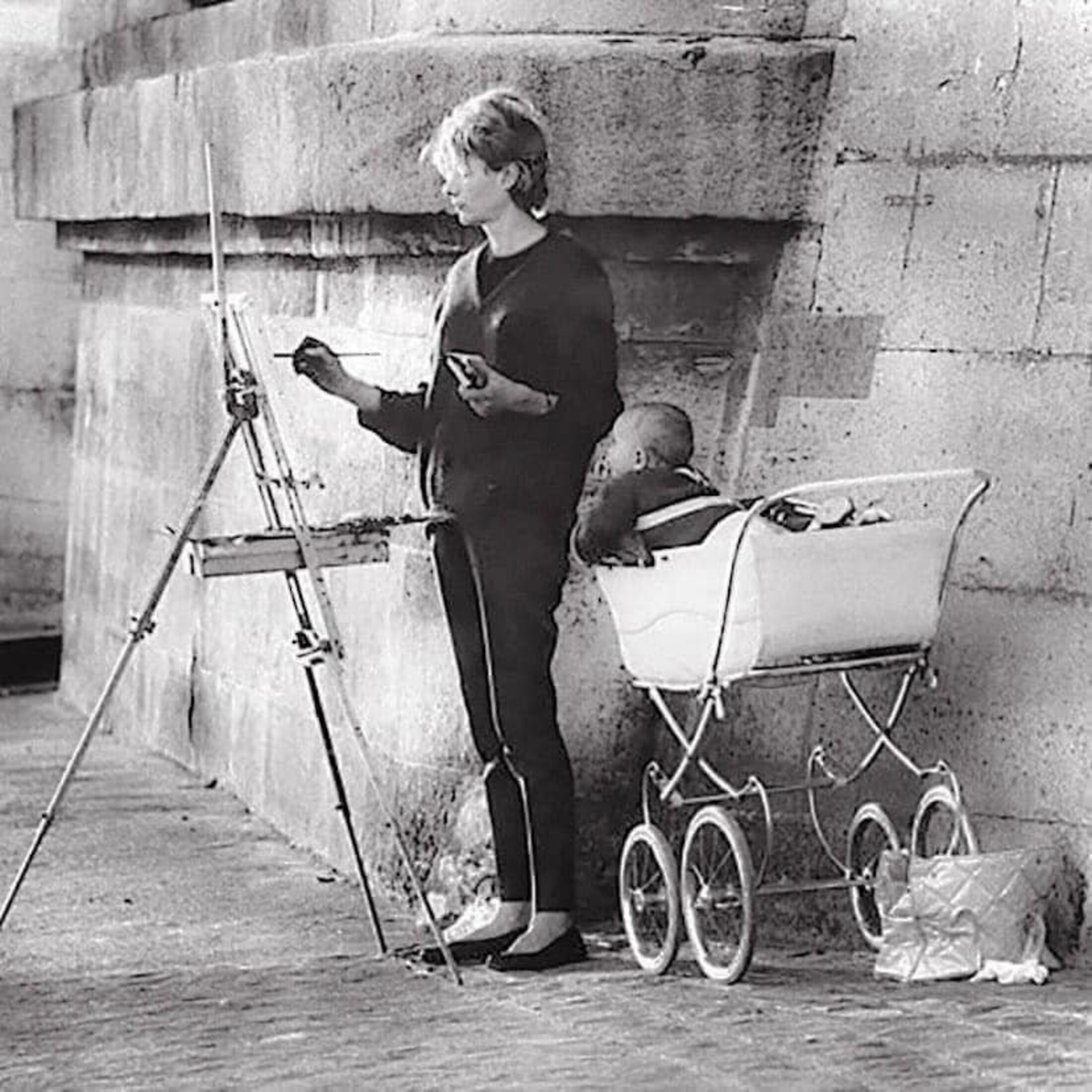 Avec une photographie de René Groebli, Une femme peignant au bord de la Seine à Paris, 1964