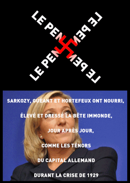 Ecoutez les bavasser ces tenants de l’originalité télévisuelle (les Zemours, les Elisabeth Levy, les Marine Le Pen) répétant à l’envie, comme sur un disque rayé leur haine de la différence, de l’étranger. Regardez les pavoiser ces crétins certifiés parce que la blondasse héritière atteint 20 %....