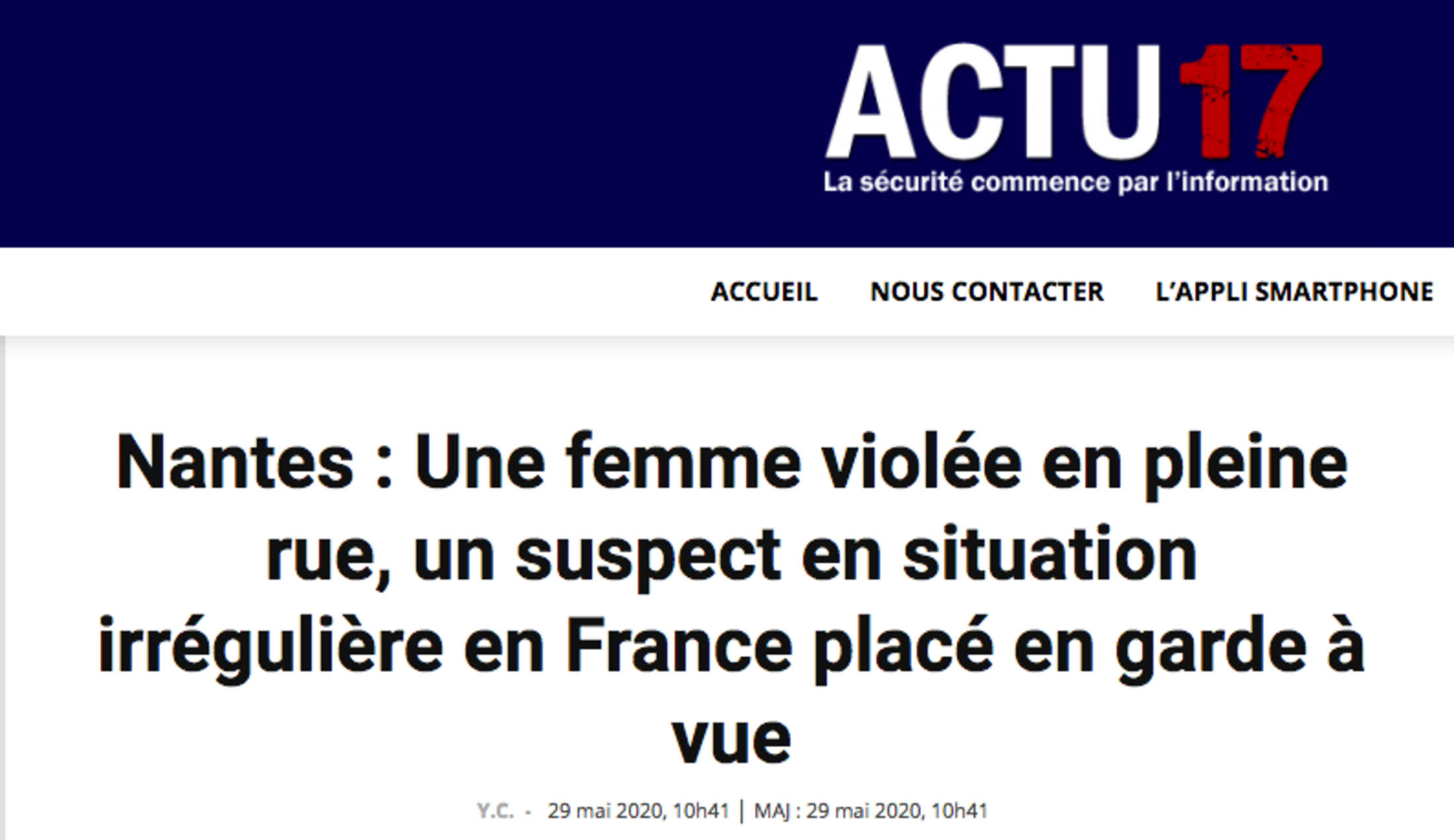 Regardons cet exemple : Damien Rieu, militant d’extrême droite chez les Identitaires, a posté un tweet d’Amaury Bucco, journaliste chez Valeurs Actuelles, qui aborde le thème des funérailles: “Habituellement environ 80% des corps musulmans sont rapatriés dans leur pays d’origine et enterrés selon les rites islamiques. La fermeture des frontières rend cette démarche impossible (en raison de la crise du COVID-19 N.D.L.R). D’où la demande de carrés musulmans dans les cimetières français “. Damien Rieu, fait une très mauvaise interprétation des informations fournies: “Donc 80% des musulmans ne se sentent pas Français?” Puis le site d’extrême droite Nouvelles de France, qui relaie les infos de Twitter, retouche le titre et supprime “Donc” et “?”. Le titre de l’actualité apparait ainsi : “80% des musulmans ne se sentent pas français”. Une affirmation incorrecte, un FAKENEWS.