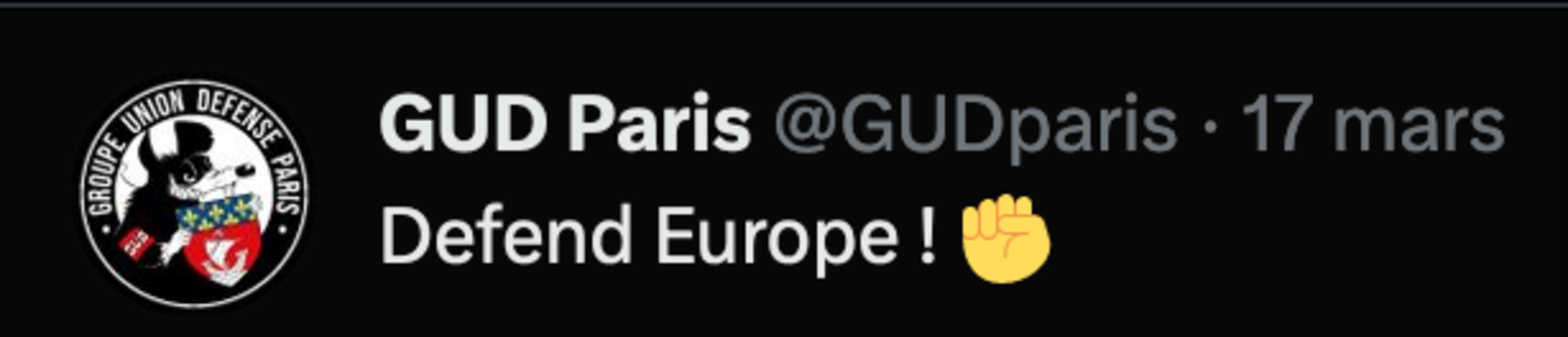 Pour conclure, le groupe Gud est de retour avec de nouvelles actions et un nouveau symbole : l'index pointé vers le ciel. Ce geste, associé au terrorisme, corrobore un glissement envers cette idéologie appelée le Jihad blanc, moyen que selon les militants du Gud, mais aussi d'autres groupuscules d'extreme droite française, serait une options stratégique pour imposer une hégémonie blanche en Europe. Le Gud cherche à radicaliser ses actions et à promouvoir une vision de la supposée "race blanche" contre le multiculturalisme et l'immigration, se rapprochant de la tendance accélérationnistes anti “grand remplacement” et ultra-violente.