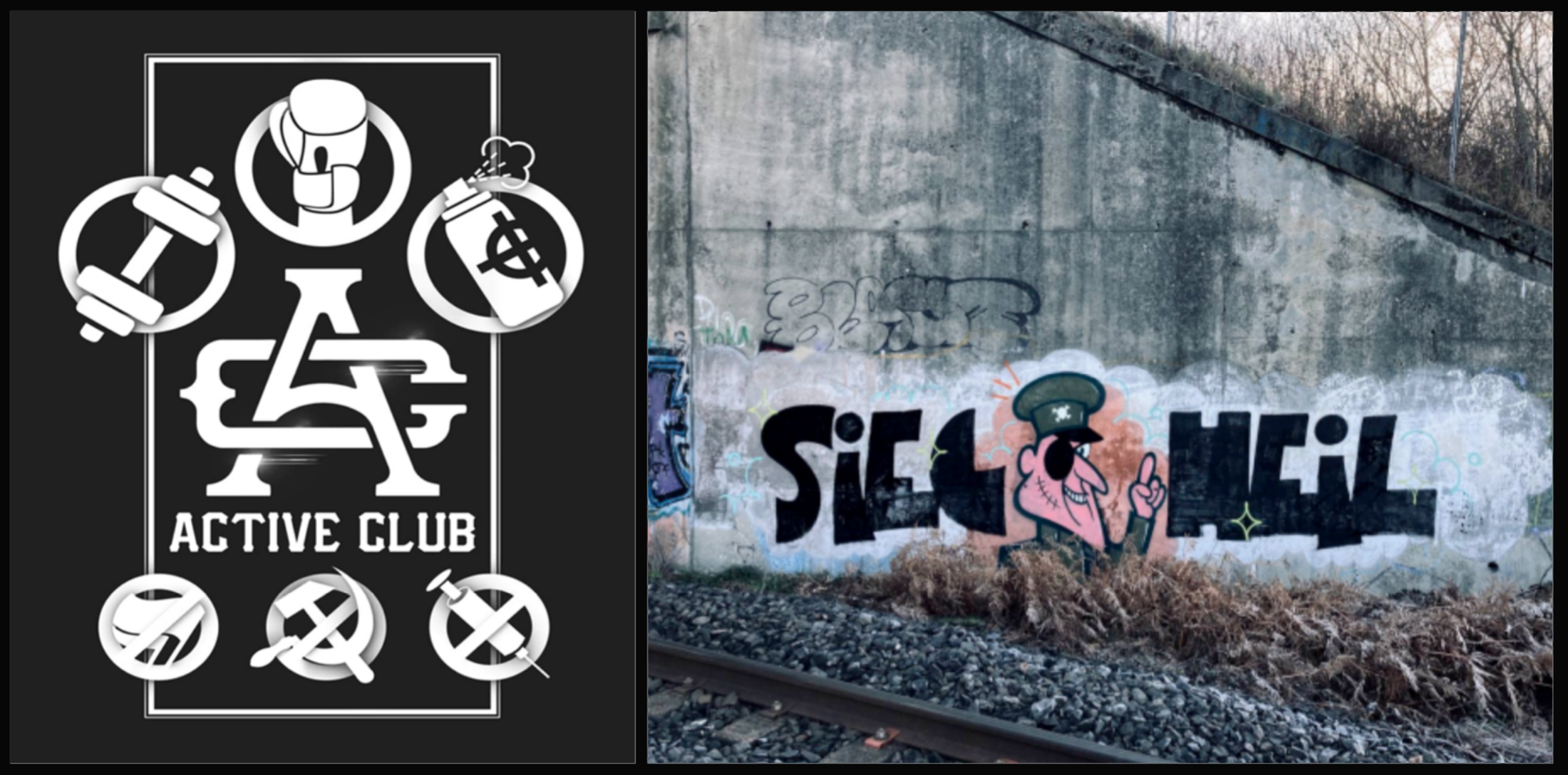 Dans la même ligne des Active Club américains, obsédés par le suprémacisme blanc, le néonazisme et le graffiti, les Active Club français suivent la même vague. Au-delà que plusieurs de leurs membres portent des symboles nazis, ce même geste a été repéré dans l’image suivante, partagée en janvier 2023 par les graffeurs néonazis du collectif La Cagoule.
