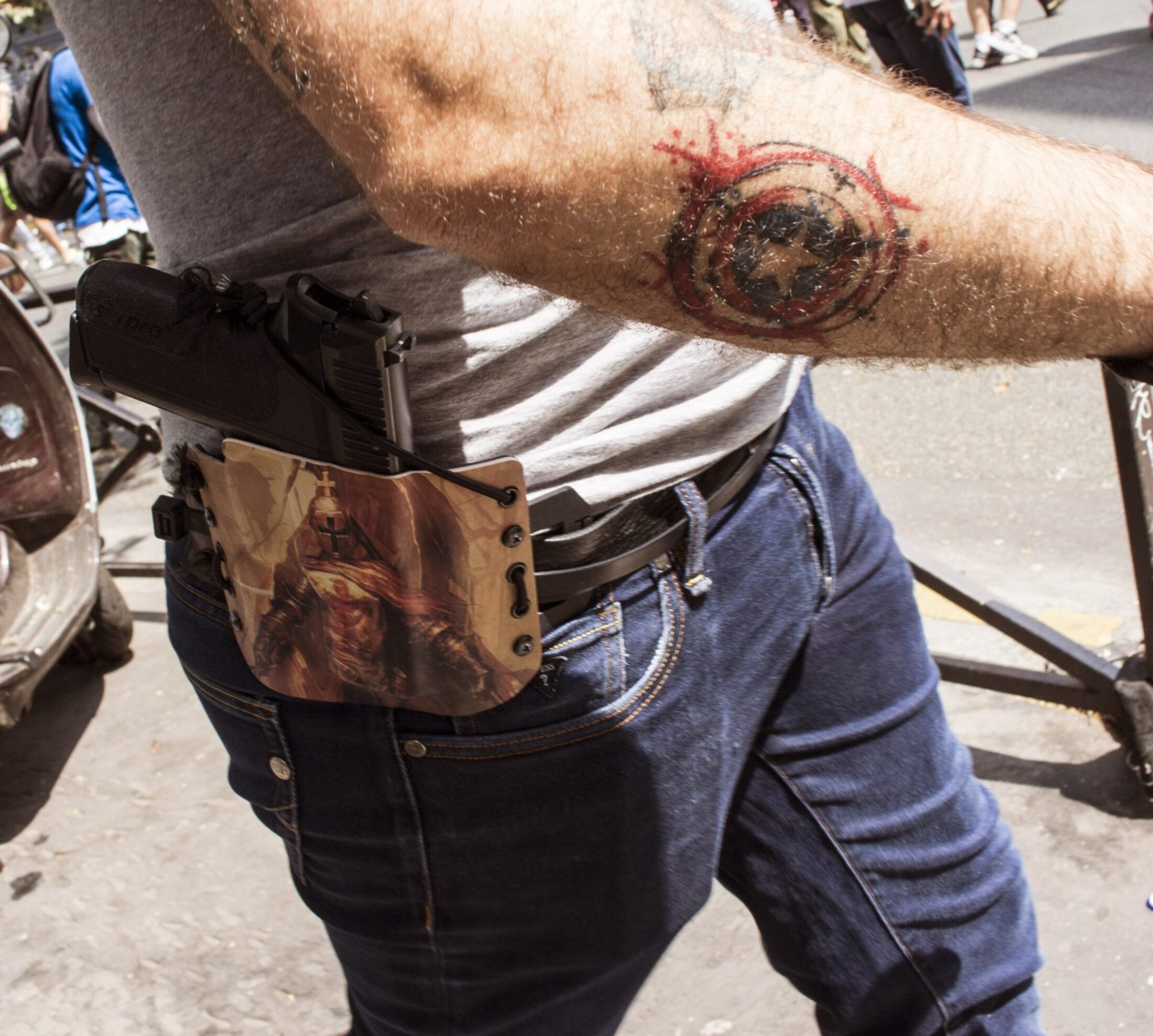 A Paris, un agent de la BAC se balade comme un gangster à côté des manifestants, avec son holster super personnalisé et son tatouage représentant le bouclier du Captain America. Ce dernier renvoie d'abord à l'identité chrétienne puis au nationalisme. Historiquement, les guerriers Templiers ont anéanti la menace musulmane en Europe et au Moyen-Orient et ont permis au christianisme de se renouveler. Mais, ce policier ignore-t-il que les croisades ont fauché quelques 3.000.000 de vies en près de 200 ans ? Les croisades sont-elles vraiment un événement à glorifier et faire valoir dans la police ? Sommes-nous là devant un policier islamophobe ?