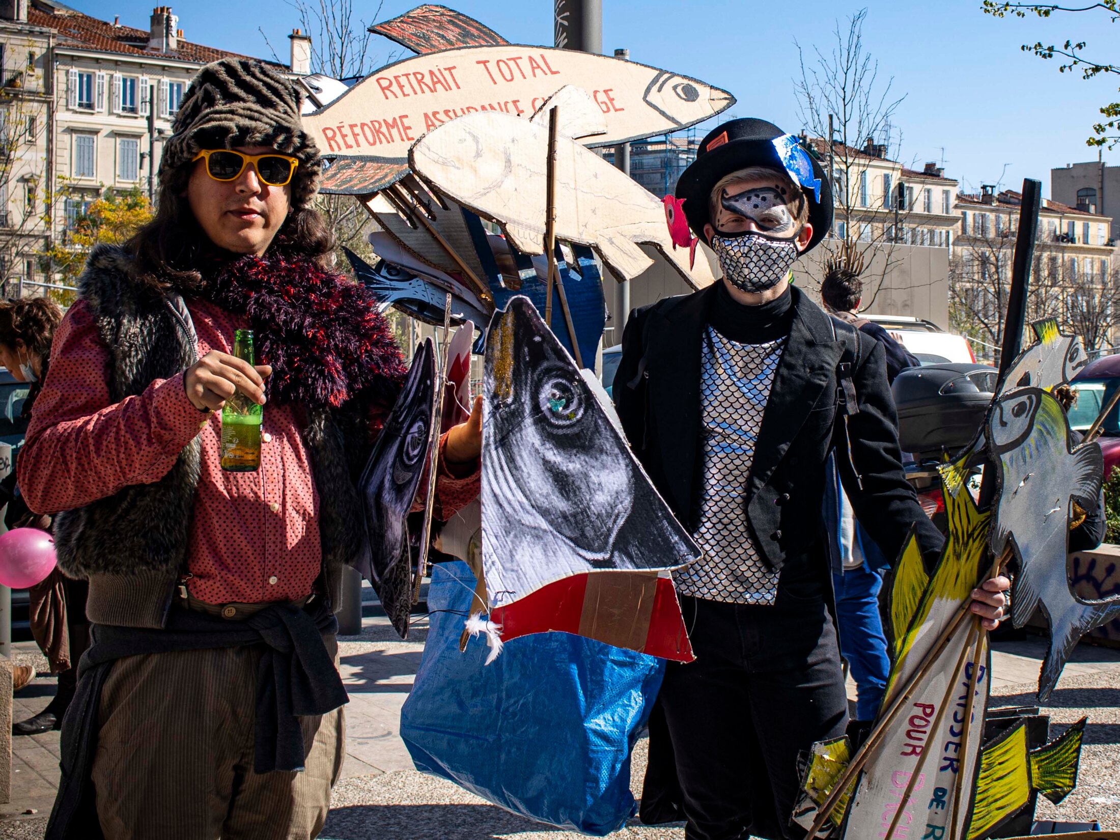 Formellement contestataire avec ses effigies à l’image de Roselyne Bachelot ou Gérald Darmanin, le carnaval de cette année n’a eu de cesse de dénoncer la “dictature sanitaire” et d’invoquer au retour de la fête, alors que l’on ne voit toujours pas la fin de cette crise pandémique dont la gestion par le gouvernement est critiquée de toutes parts. Il n’en fallait pas moins pour que responsables politiques locaux et représentants des autorités en aillent de leur stigmatisation des participant·es : la Préfète des Bouches-du-Rhône dénonçant “l”irresponsabilité totale des participants […] en pleine crise sanitaire” tandis que le maire Benoît Payan poussait des cris d’orfraie sur Twitter, où l’on a par ailleurs vu une vraie déferlante de critiques : “Rien ne justifie qu’on détruise les efforts collectifs pour endiguer le virus ! Rien ne justifie qu’on profane le lieu des effondrements de la Rue d’Aubagne !”