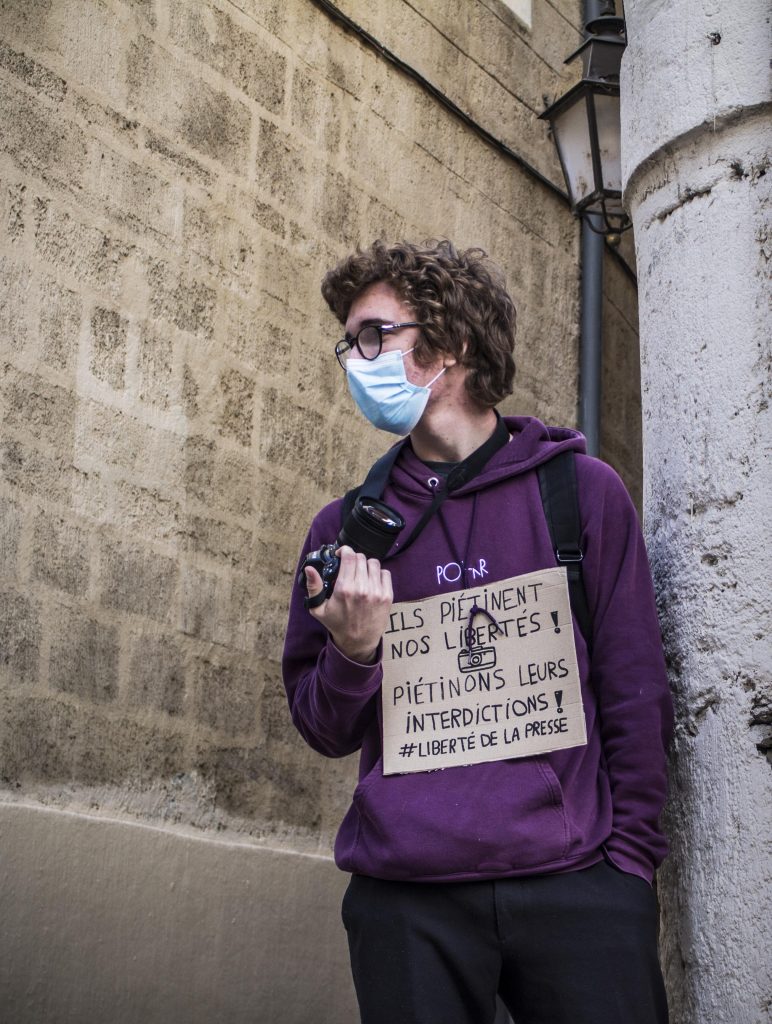 En cette journée consacrée à la lutte contre la loi Sécurité Globale, de nombreux journalistes seront contrôlés. A Montpellier, la manifestation étant autorisée jusqu'en début d'après midi avant de laisser place à celle des Gilets jaunes, interdite par le Préfet, autant être fidèle à la réalité ; une certaine crainte a pu régner parmi les acteurs de la profession : "Après midi, je rentrerai chez moi ... Sans carte de presse, j'aurai certainement une amende" dit un photojournaliste avec plus d'une dizaine d'années de travail pour des agences de presse.