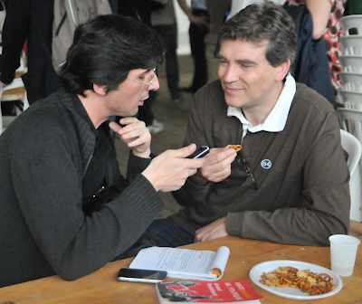 Malgré les centaines de militants qui voulaient l'approcher, l'embrasser, lui parler ou se faire photographier avec lui, le ministre du Redressement Productif a eu la gentillesse de m'accorder 10 minutes d'entretien, en tête à tête, pour parler des coopératives et de Fralib… Quand je l'ai remercié, il m'a répondu : "je te dois bien ça"… C'est bien la première fois de ma vie qu'un ministre de la République m'est redevable de quoi que ce soit, et je ne suis pas près d'oublier ça.
