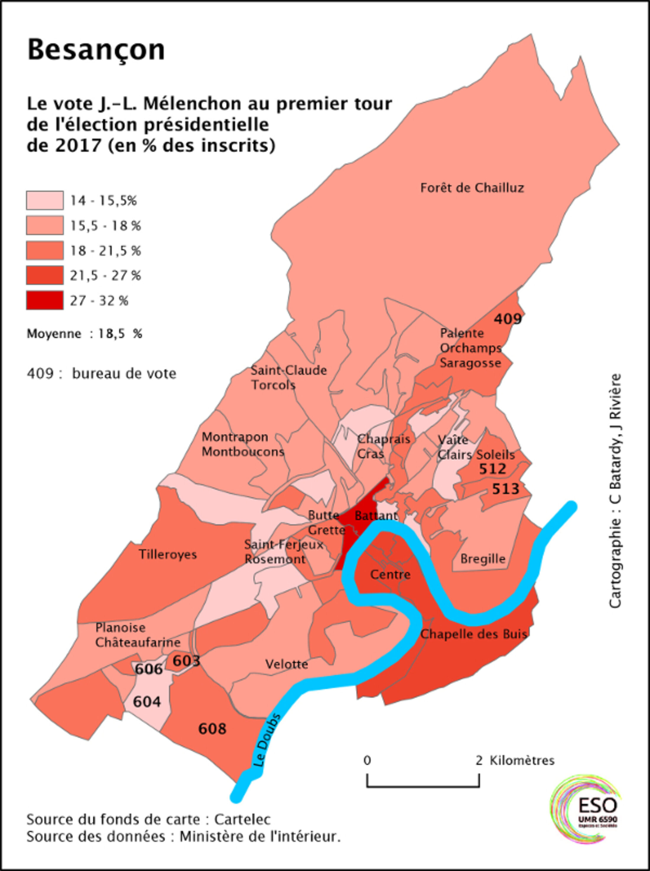 Parus dans le cadre d'un dossier de Métropolitiques intitulé "Les votes des grandes villes françaises au microscope", cet article sur Besançon écrit par Guillaume Gourgues est à découvriri ICI