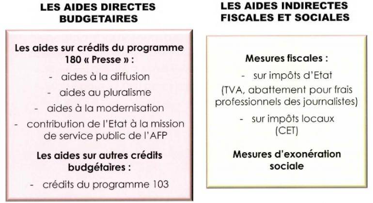 Depuis 2012, cette frénésie de dépenses a commencé à être corrigée. En 2013, le montant versé par l’État au titre des aides publiques directes à la presse s’élève à 534 millions d’euros. Il faut y ajouter le coût estimé du taux préférentiel de TVA (2,1 %) : si la TVA était porté à 5,5 %, l’État gagnerait 200 millions d’euros supplémentaires, et plus d’un milliard si le taux normal, de 19,6 %, était appliqué à la presse. Au total, les aides correspondent à pas moins de « 7,5 % du chiffre d’affaires de la presse écrite »."