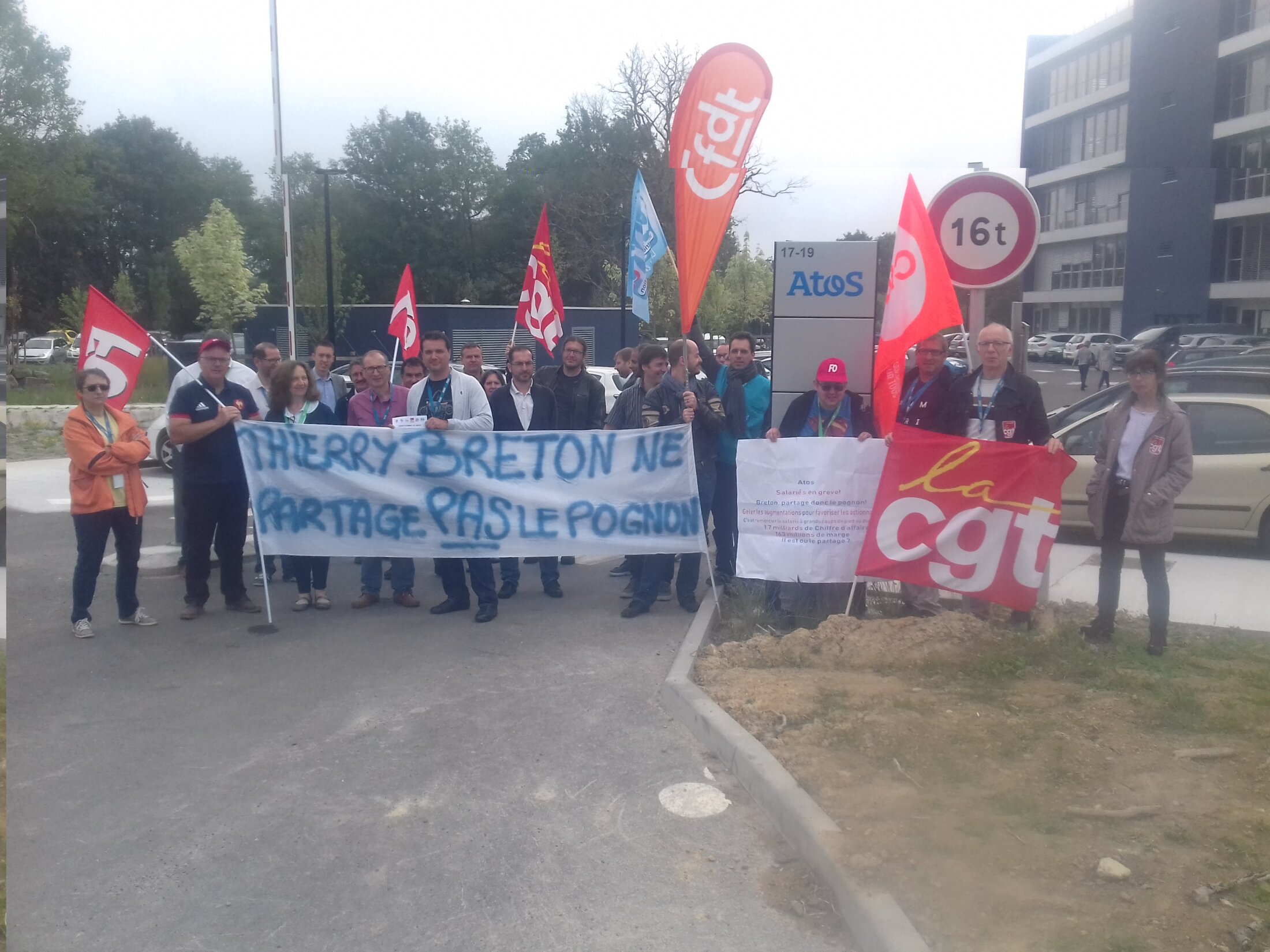 La photo ci-dessous date de juin 2018 : mouvement de grève à l'agence nantaise d'ATOS, du temps où Thierry Breton était encore PdG du groupe.