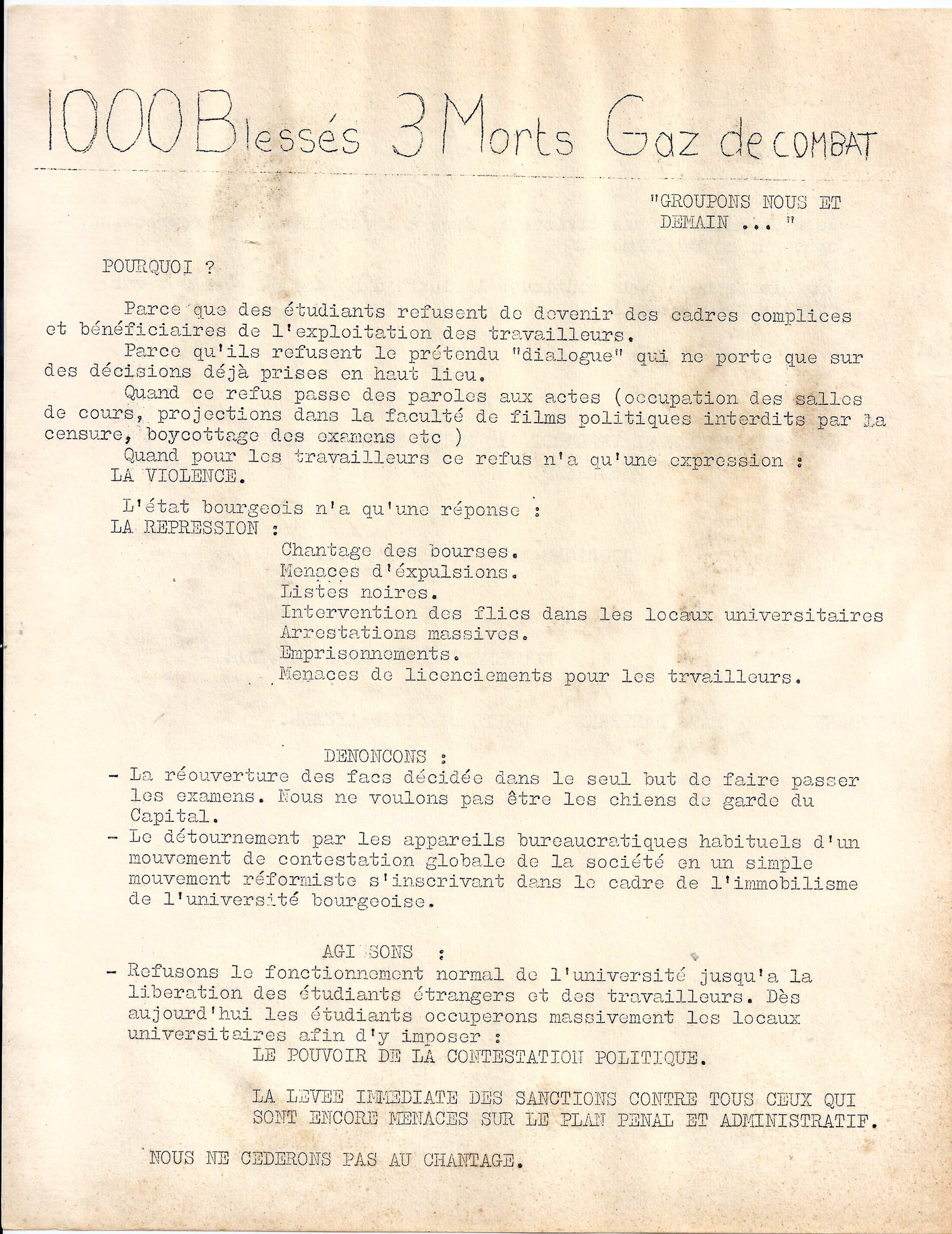 Mai 68 : Tracts de JLM au fil des jours (10) : étudiants, lycéens, manif du 10
