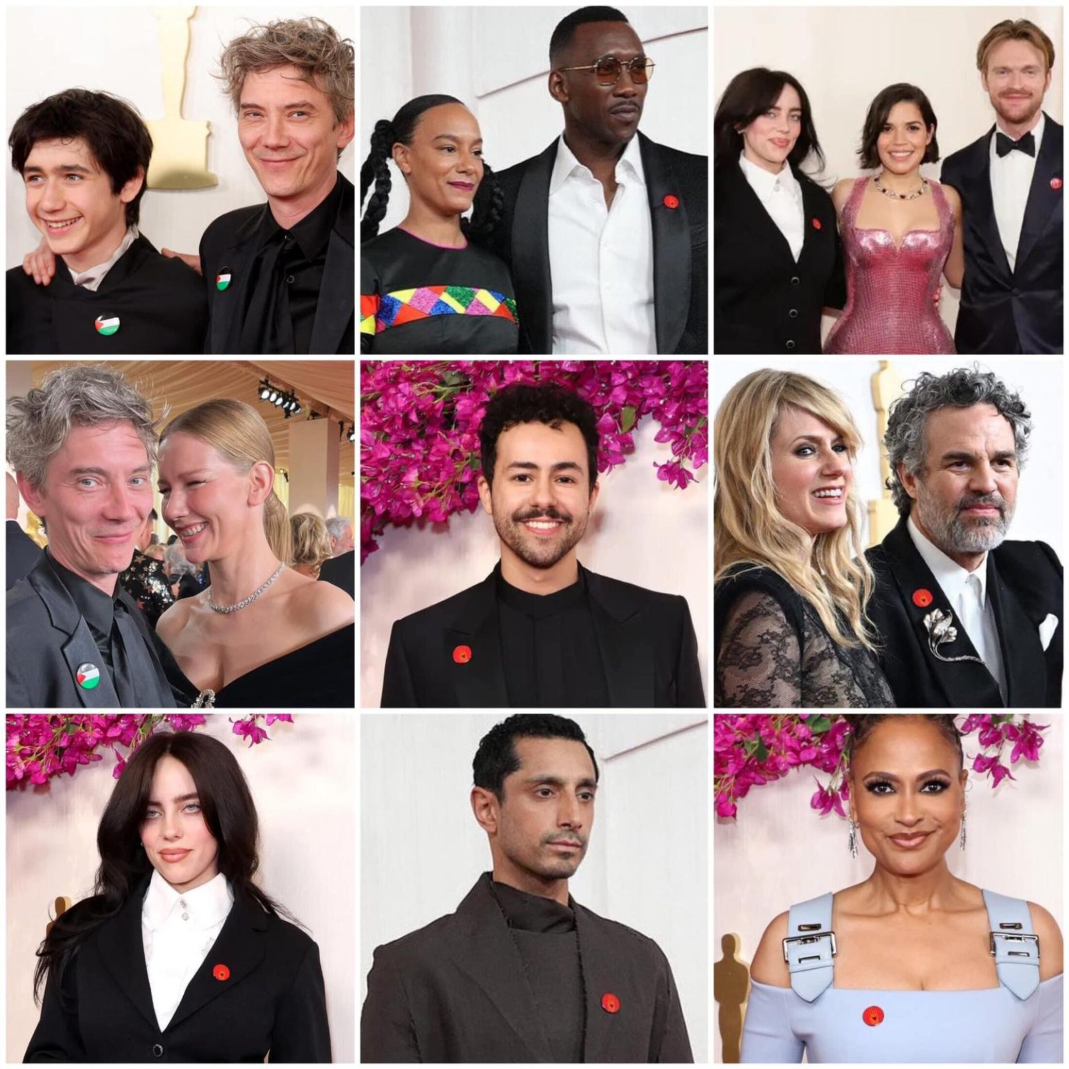 Qui, sur le tapis rouge des Oscars, par solidarité avec le peuple palestinien, des pin’s, ont portés