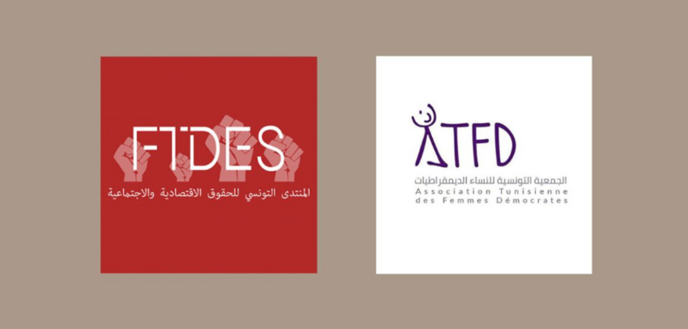 En photo ci-dessous, les logos du FTDES, Forum tunisien pour les droits économiques et sociaux, et de l’ATFD, l'Association tunisienne des femmes démocrates.