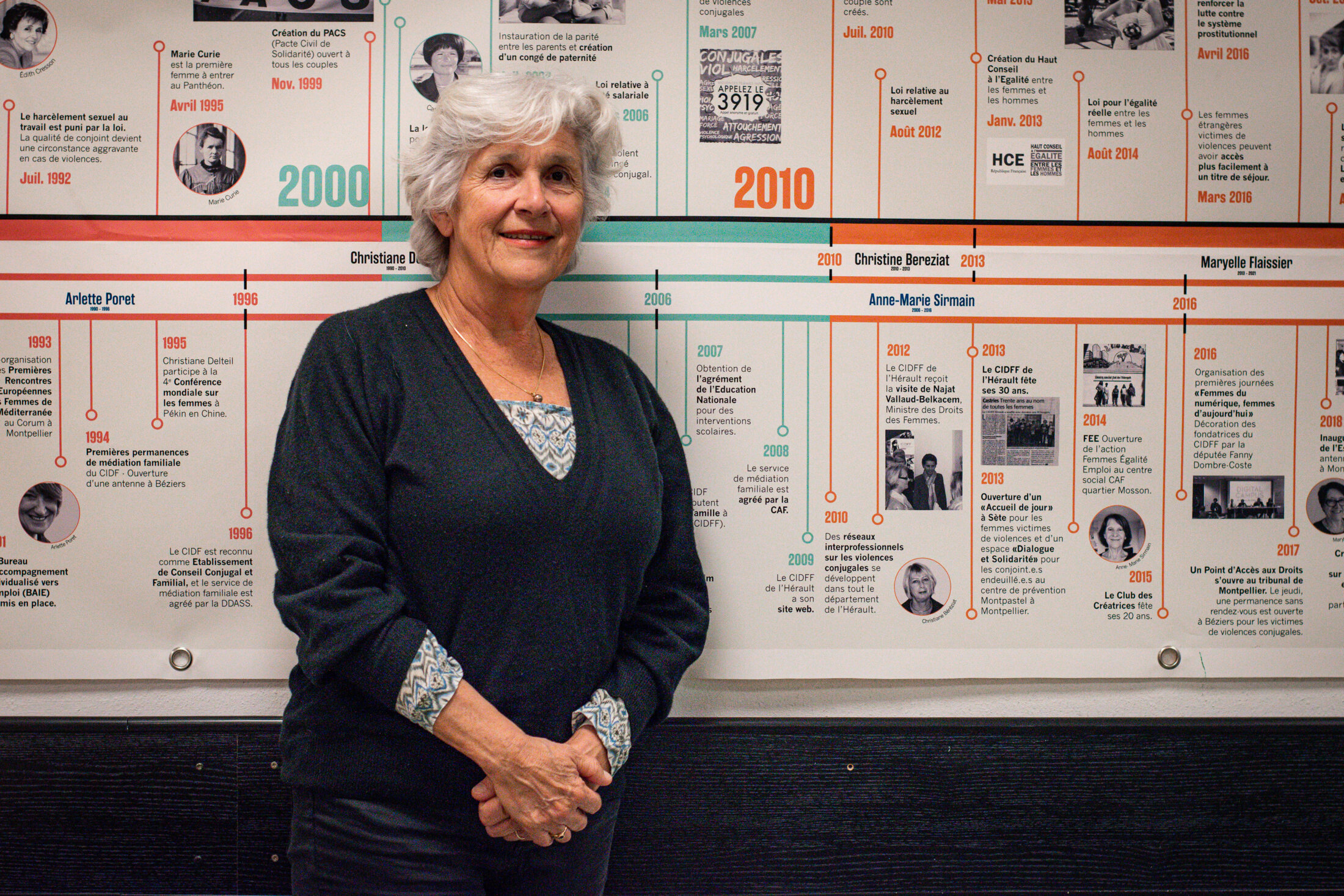 C’est une rencontre fortuite qui la ramène auprès de ses premières intuitions féministes. Entre deux courses, Aline Faucherre croise une amie de longue date, à l’époque présidente du CIDFF 34. « Et quand ton congé sera fini, tu vas faire quoi ? » Aline répond qu’elle compte reprendre son poste dans les audits pédagogiques. « Tu ne voudrais pas venir plutôt chez nous ? » renchérit son amie.