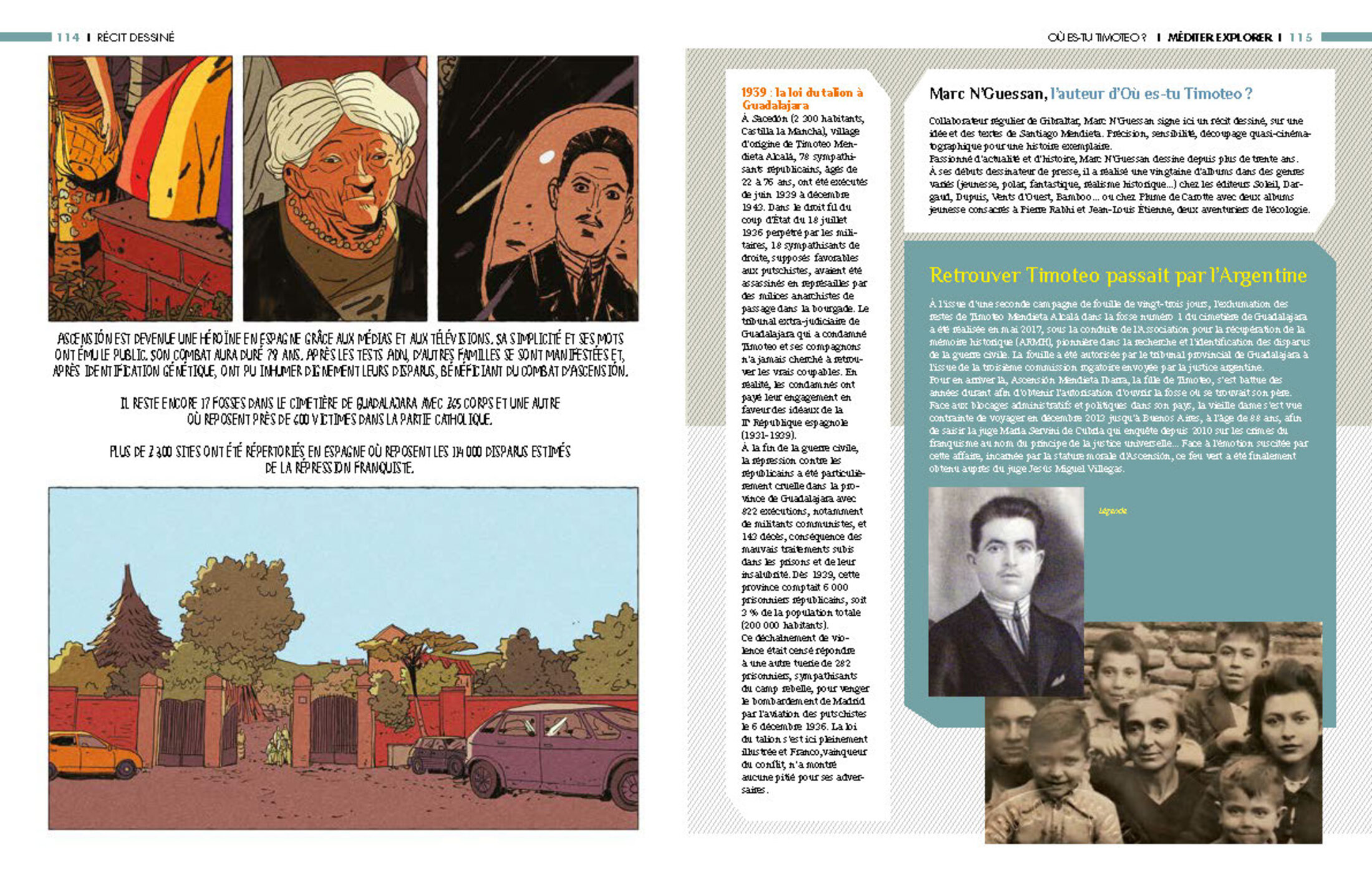 Dans un registre différent, la revue Gibraltar publie dans son dernier numéro (numéro 7) “Où es-tu Timoteo ?" un émouvant récit dessiné qui illustre en détail l'inlassable quête d'Ascension Mendieta, qui est devenue malgré elle le symbole de ces familles et descendants de républicains espagnols qui recherchent un proche ou un parent exécuté durant la répression franquiste dès 1939.