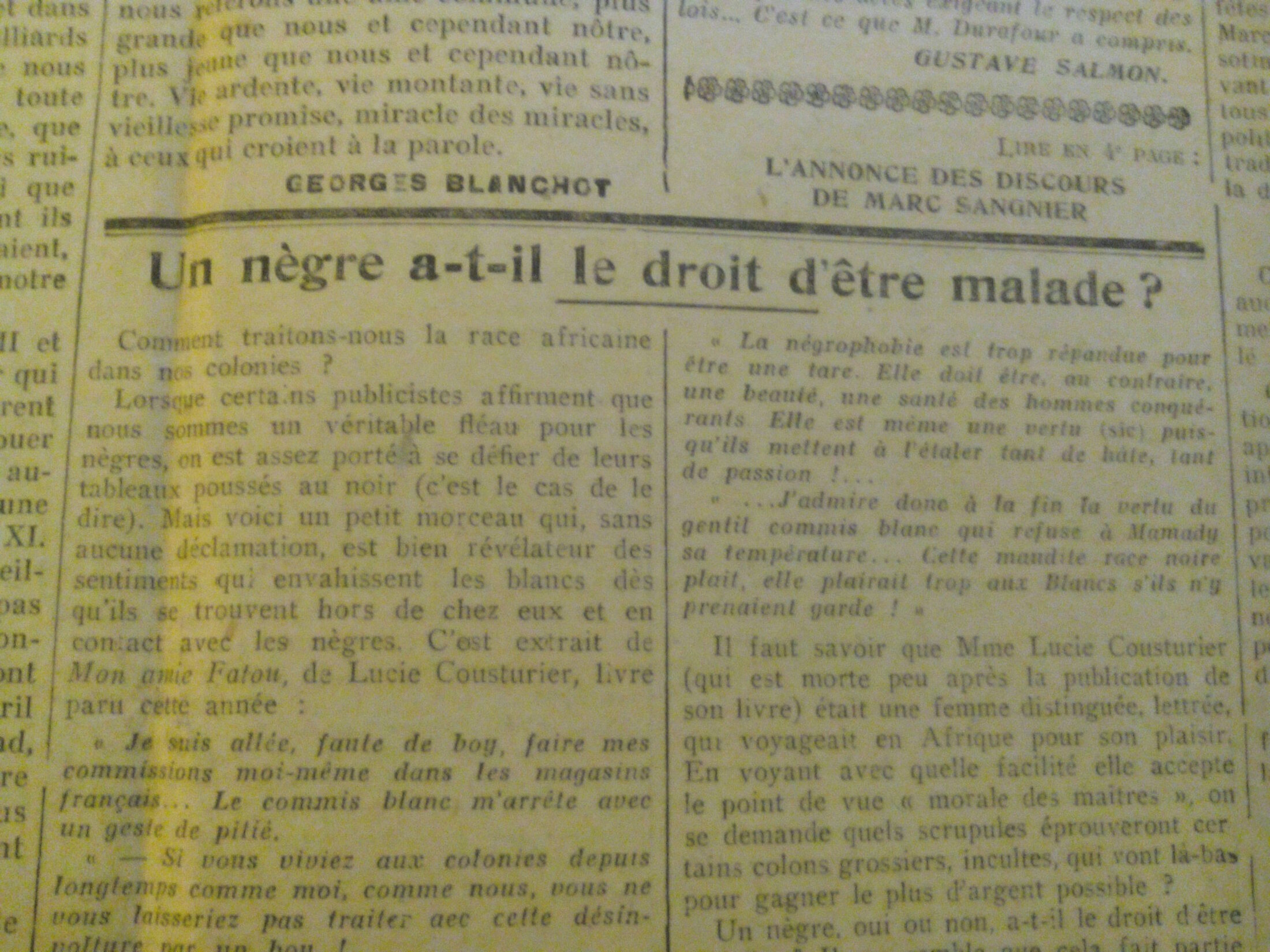 Finalement, le journal prenait position, au nom de l’humanisme, sur le fait qu’un nègre a le droit d’être malade, que cela fait partie des « droits imprescriptibles de l’Homme ».