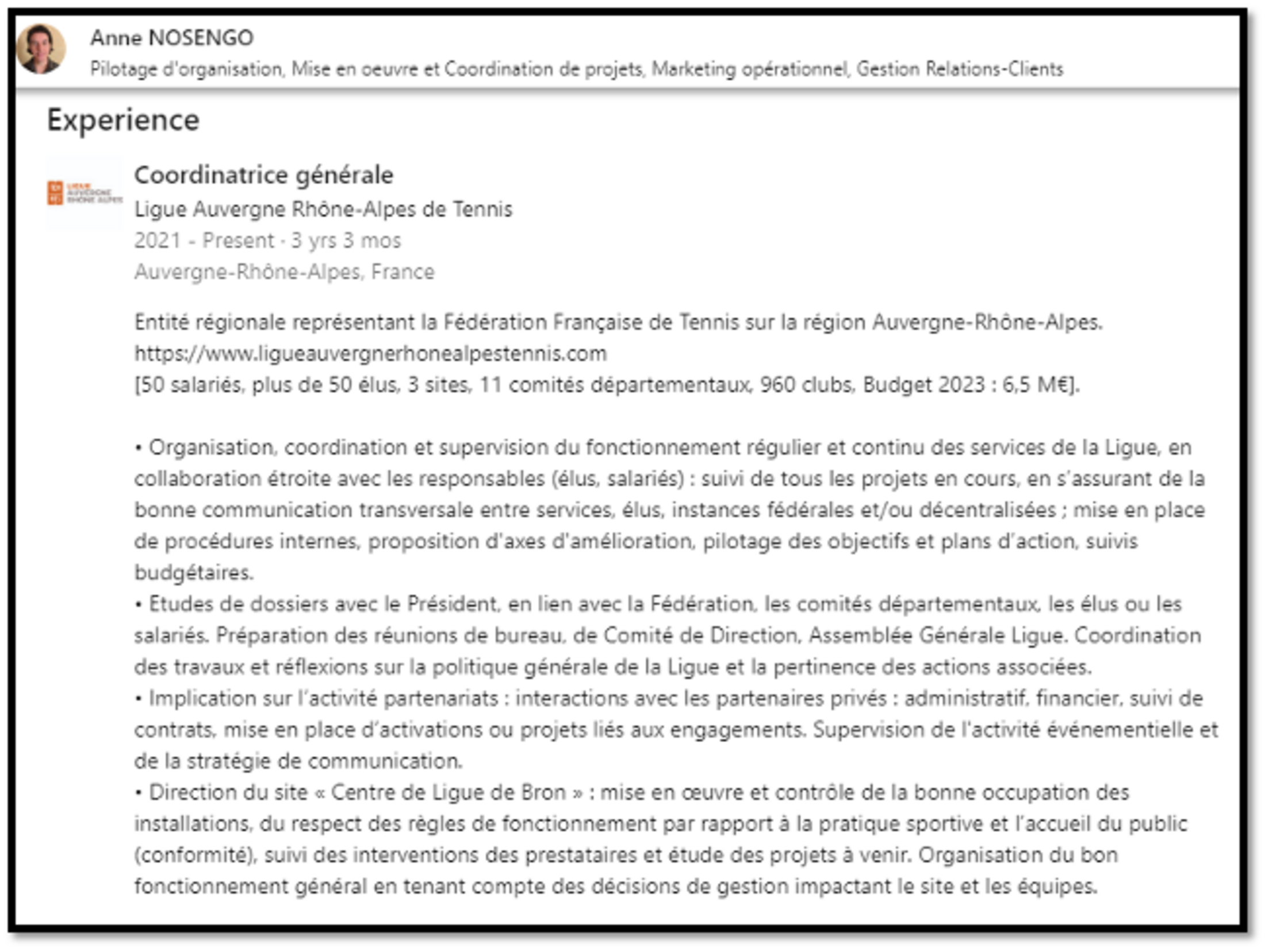 Il est à noter qu’Anne Nosengo, ex-élue bénévole de la Ligue ARA sous la Présidence de Gilles Moretton a été la directrice de Campagne du candidat Gilles Moretton. Elle va devenir dès 2021 coordinatrice générale de la Ligue ARA salariée, puis quittera la ligue pour être salariée de la FFT en janvier 2024 (pour sa carrière source LinkedIn).